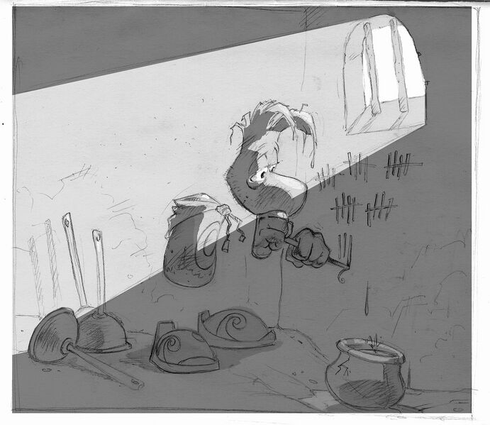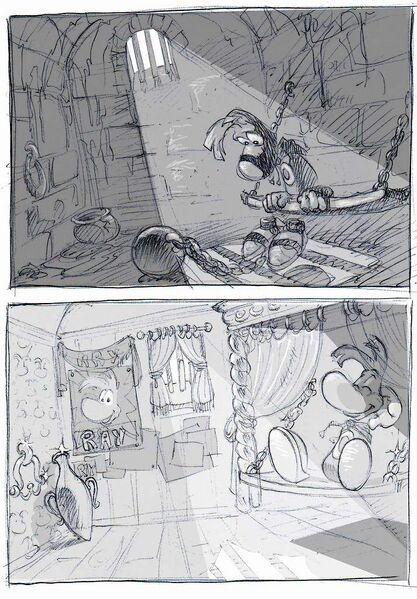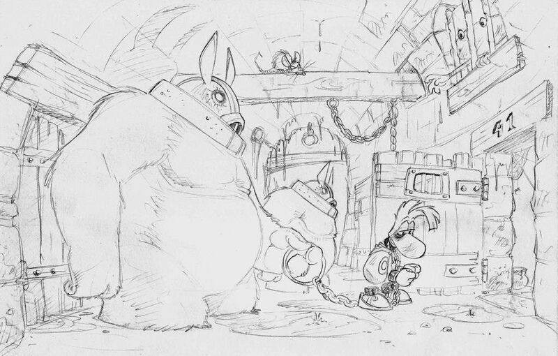 The Rayman Raving Rabbids concept art is very interesting, but seeing poor Rayman in prison is very sad...