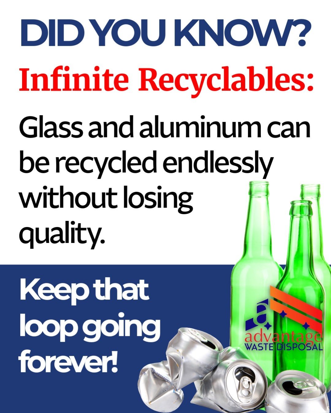 ♻️ Fun fact: Glass and aluminum can be recycled forever without losing quality! Let's keep the loop going and help save the planet. 🌎�� #recycle #sustainability #savetheearth #reducewastMc