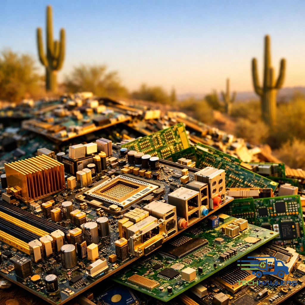Did you know there's more gold in a ton of motherboards than in a ton of gold ore? 🤯 The UN Global E-waste Monitor says so! TechHaulers recycles your tech locally in AZ, SoCal, and NV to keep resources domestic. ♻️ #eWaste #Sustainability #Recycle #TechHaulersh