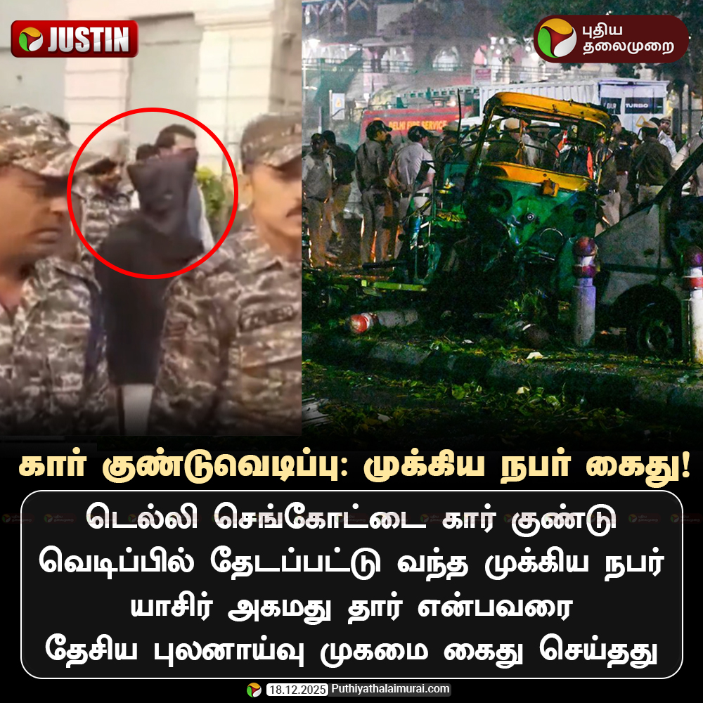 PttvOnlinenews @PttvNewsX · Dec 18, 2025 செங்கோட்டை கார் குண்டுவெடிப்பு: முக்கிய நபர் கைது #RedFortExplosion | #DelhiCarBlast | #Delhi | #CarBlast | #YasirAhmedDar 2 2 38 4.3K