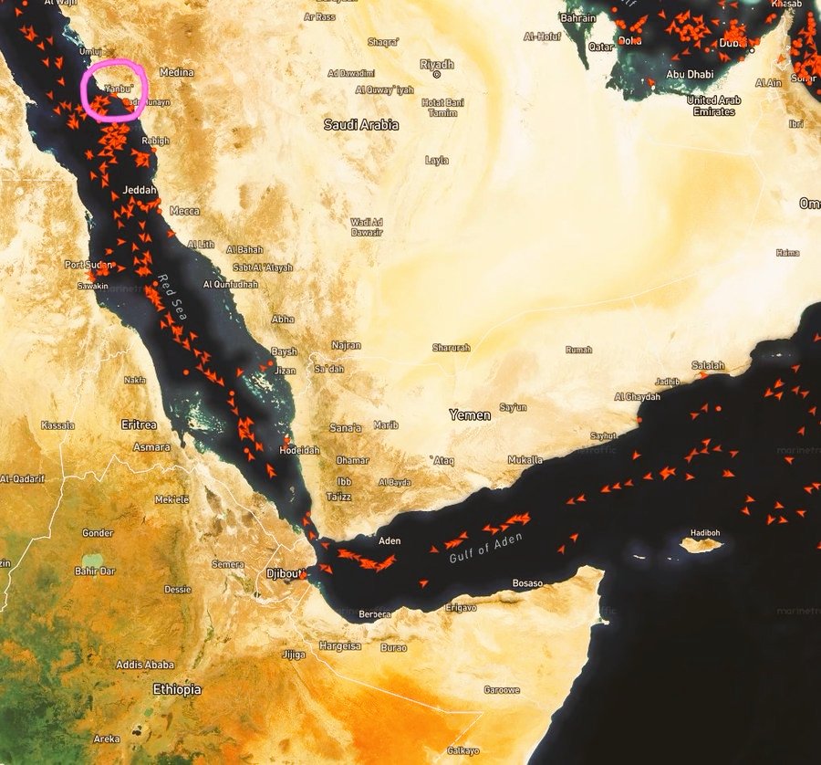🇾🇪🇸🇦 Houthis entrent en guerre. 30 pétroliers fuient déjà la mer Rouge vers Yanbu. D’autres risquent Bab al-Mandab. Routes énergétiques mondiales sous tension.