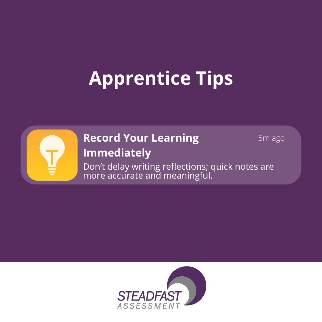 ✍️ Don’t wait - jot down what you learned right after completing a task. The details will be clearer and more useful later. #ReflectiveLearning#ApprenticeTips