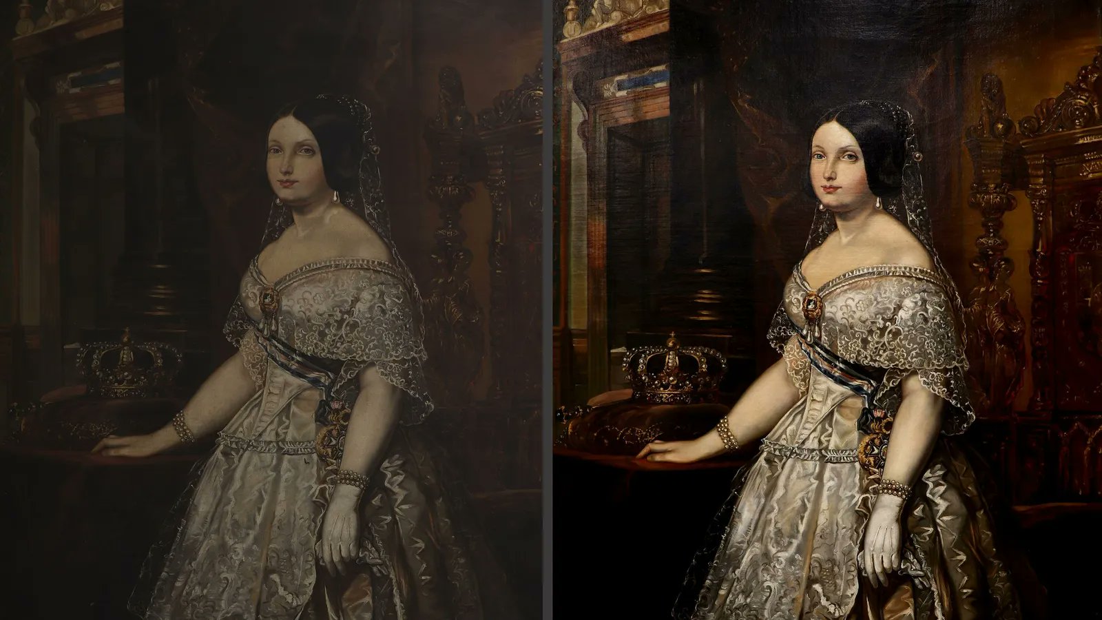 ❤️🩹 La #Universidad de #Granada #restaura un retrato de la reina #Isabel #II (1830-1904) de su Colección Histórico Artística.