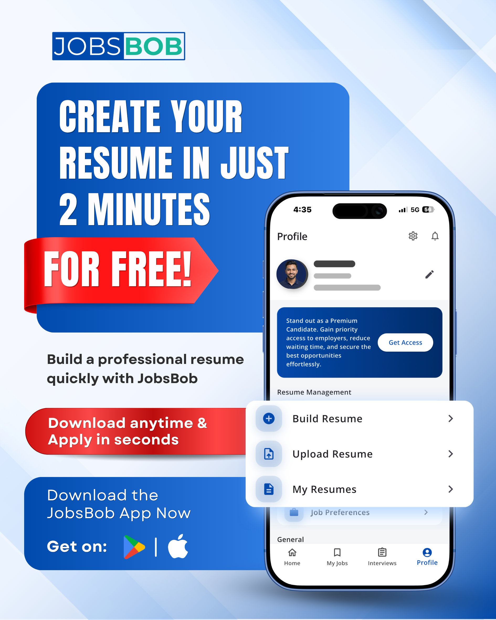 Build, download, and apply anytime with JobsBob 🚀