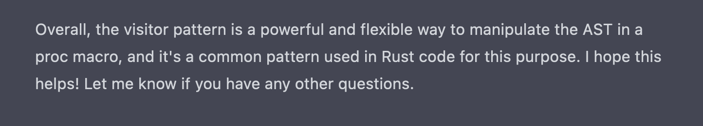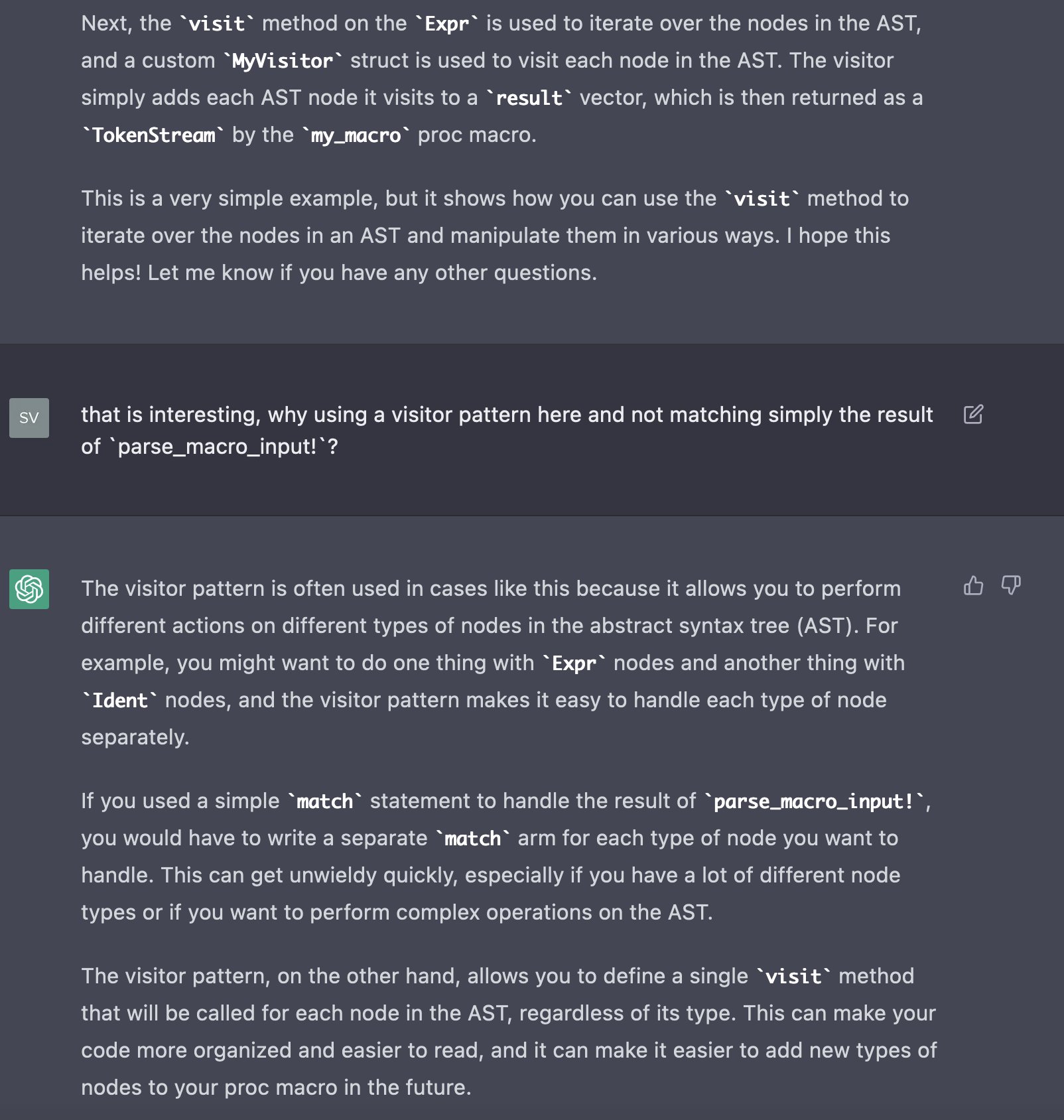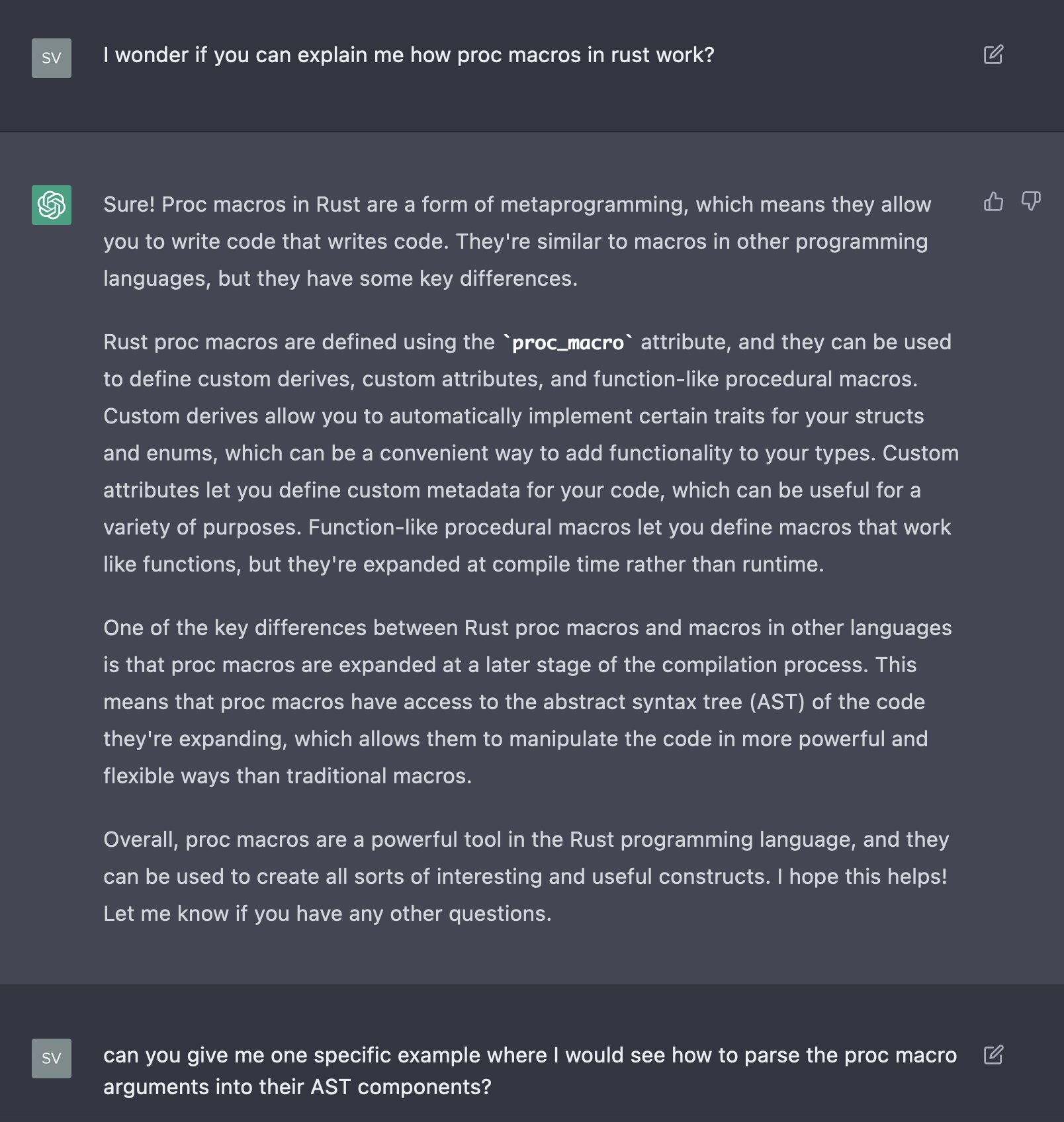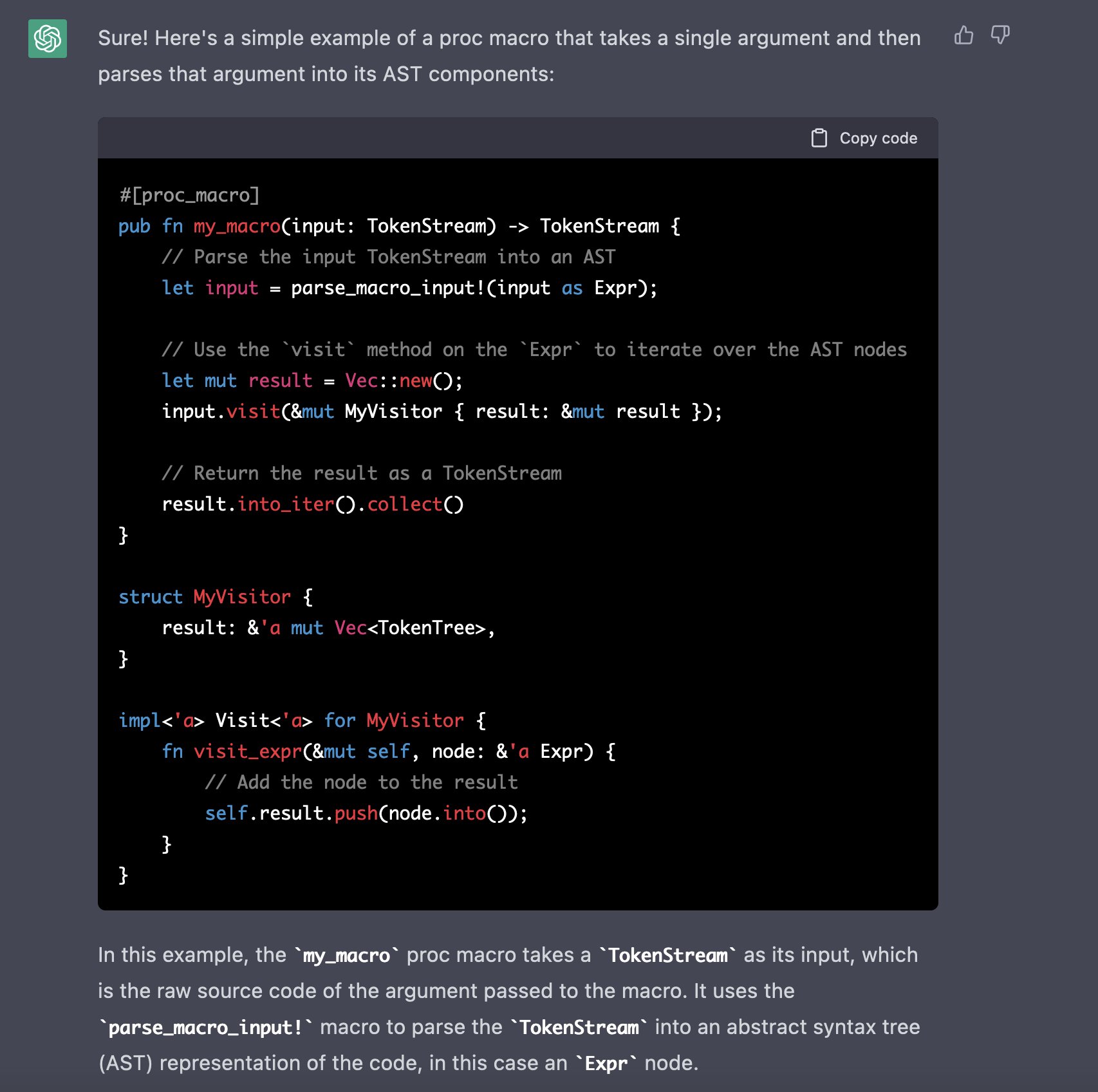 I also had a look at the chatGPT for a #rustlan proc macro case, and it's very interesting, it can really teach things.