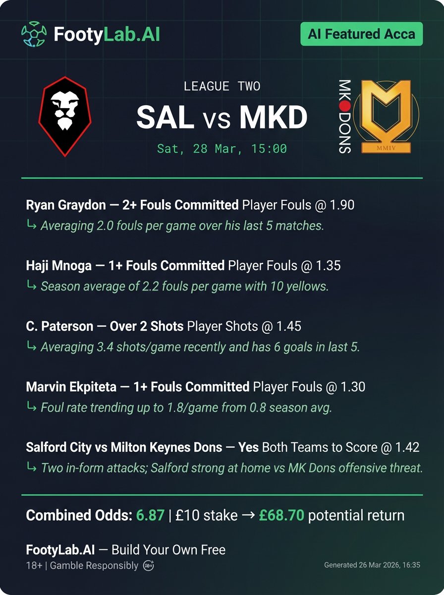 Salford vs MK Dons Acca (4.33) 📈