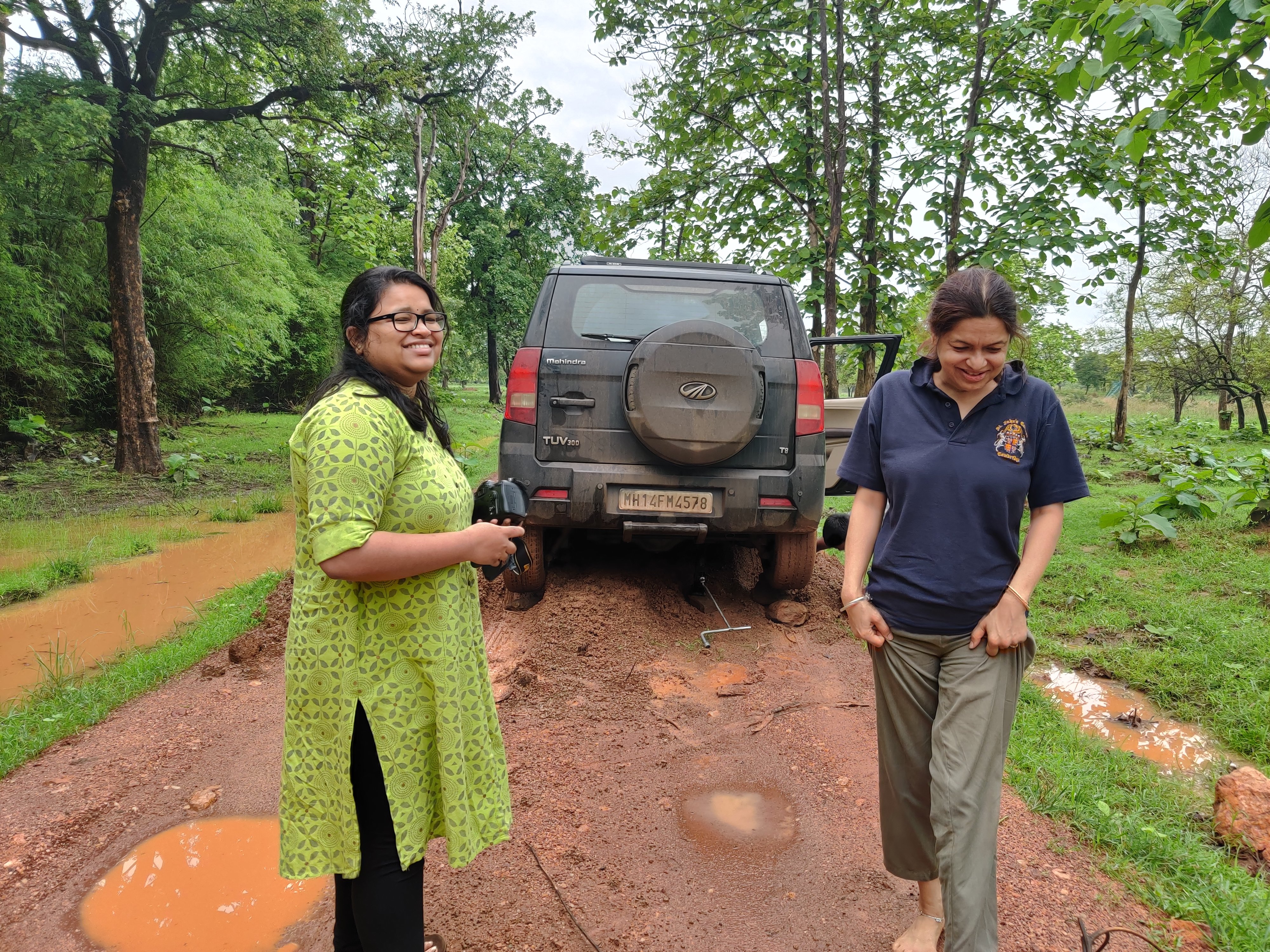 Mr Fix-it). Here we are stuck in the monsoons in the field in the reserve's buffer. And there is #samir fixing our water supply!