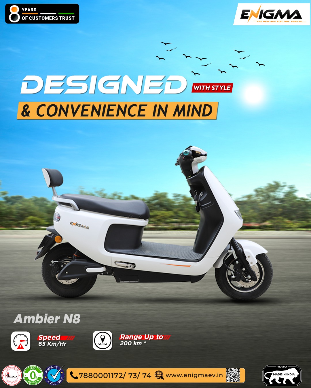 Crafted for both style and convenience, Ambier N8 by Enigma. Elevate your ride with a blend of elegance and seamless usability.
