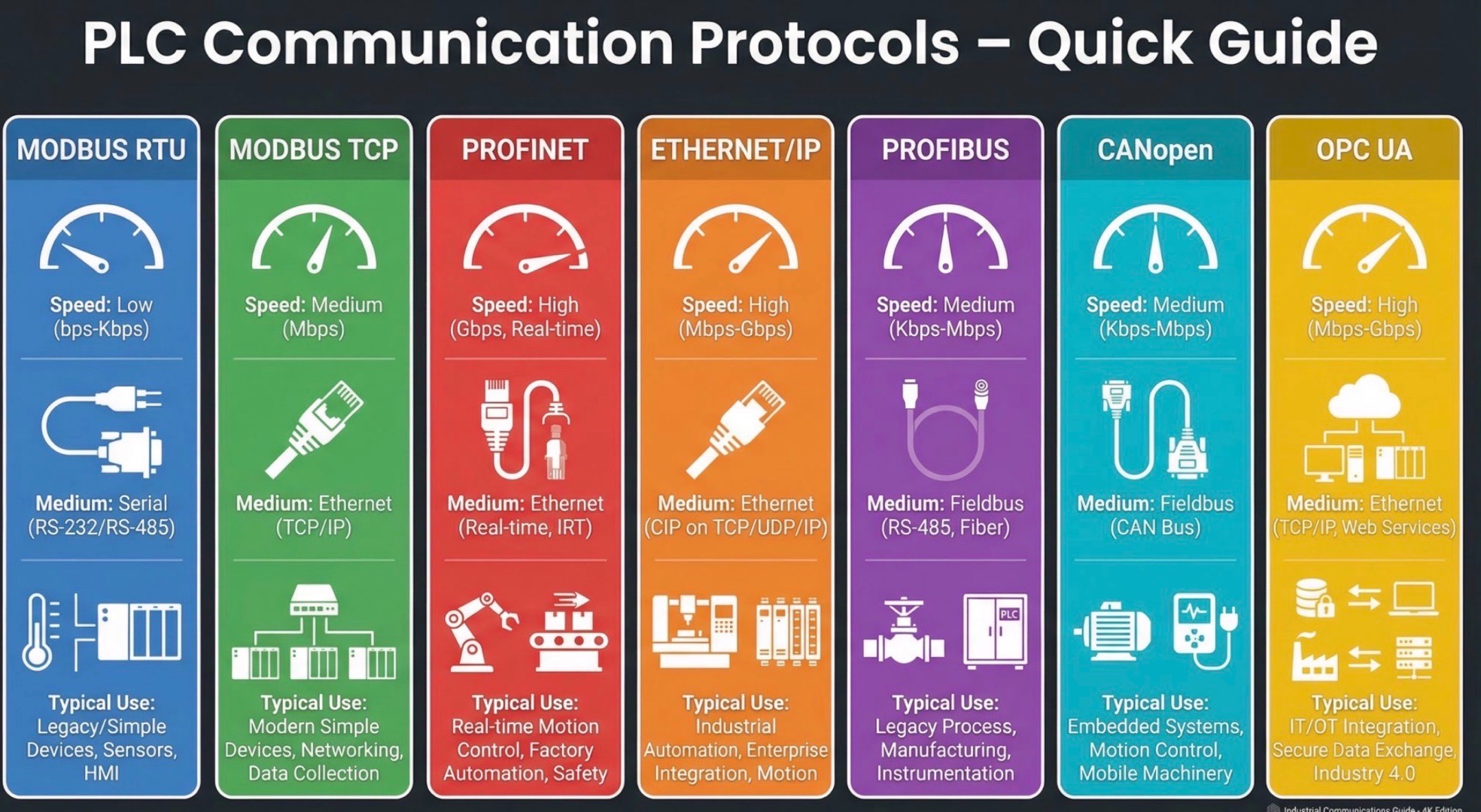 A visual guide to the most common PLC communication protocols.