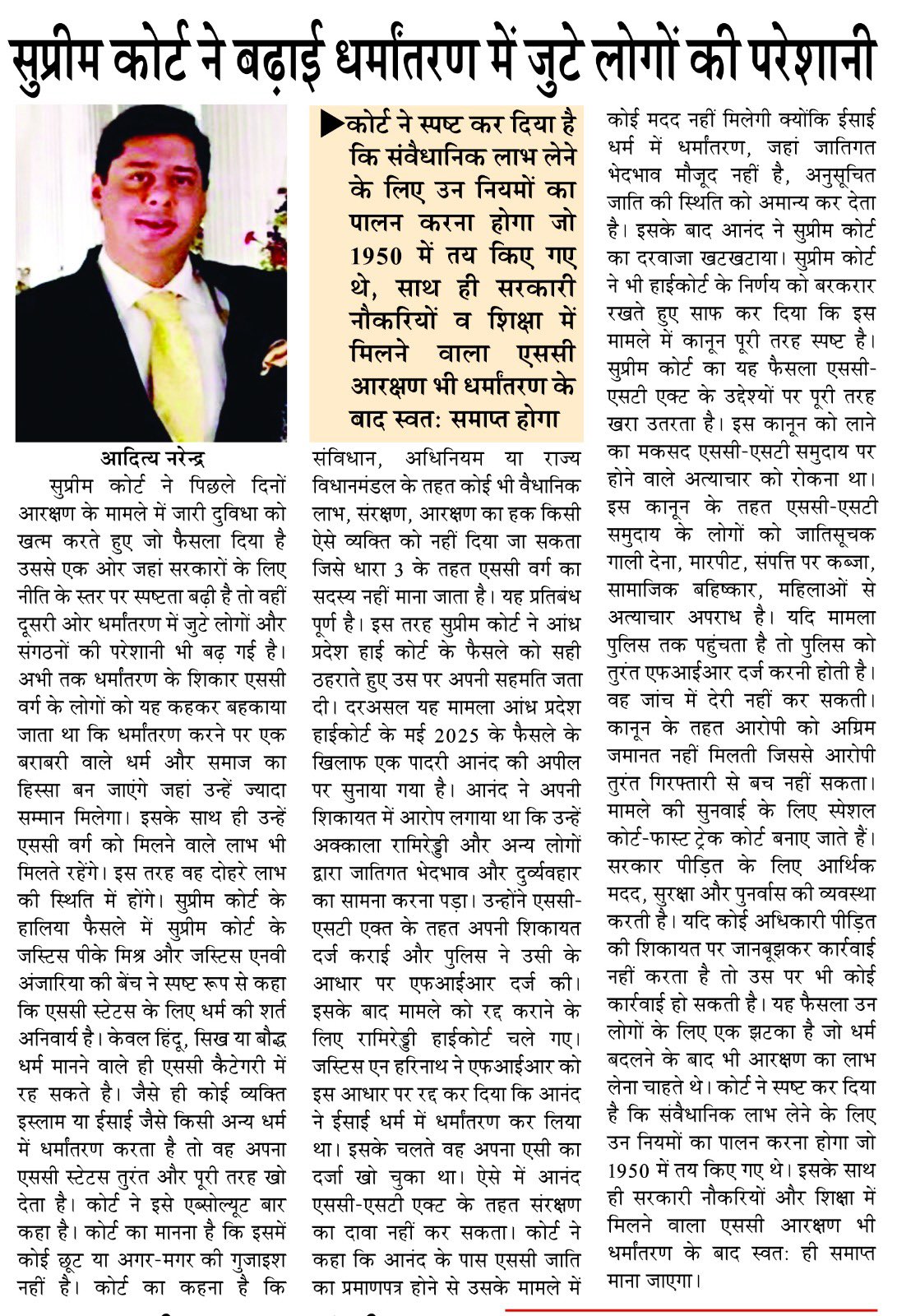 VIDEO | Delhi: Nachiketa Joshi, advocate for respondent, on Supreme Court verdict on SC/ST Act not applicable for converted Christians, says, "Today’s judgment is a very historic one. This judgment lays down who can file a complaint under the SC/ST Act. It is not related to the Christians, which is still pending. The judgment clarifies that a complaint under the SC/ST Act can only be filed by a person who belongs to the SC/ST community. In our case, the facts were such that the individual had left the SC/ST community and had converted to Christianity 10 years ago. Therefore, the question arose that if a person has converted to Christianity, does he still retain the SC/ST status? If he no longer retains the SC/ST status, then in that situation, can he file a complaint under the SC/ST Act? Today, the court gave an important decision on this matter and stated that the complaint filed by him is not maintainable. Therefore, this issue relates to criminal proceedings."