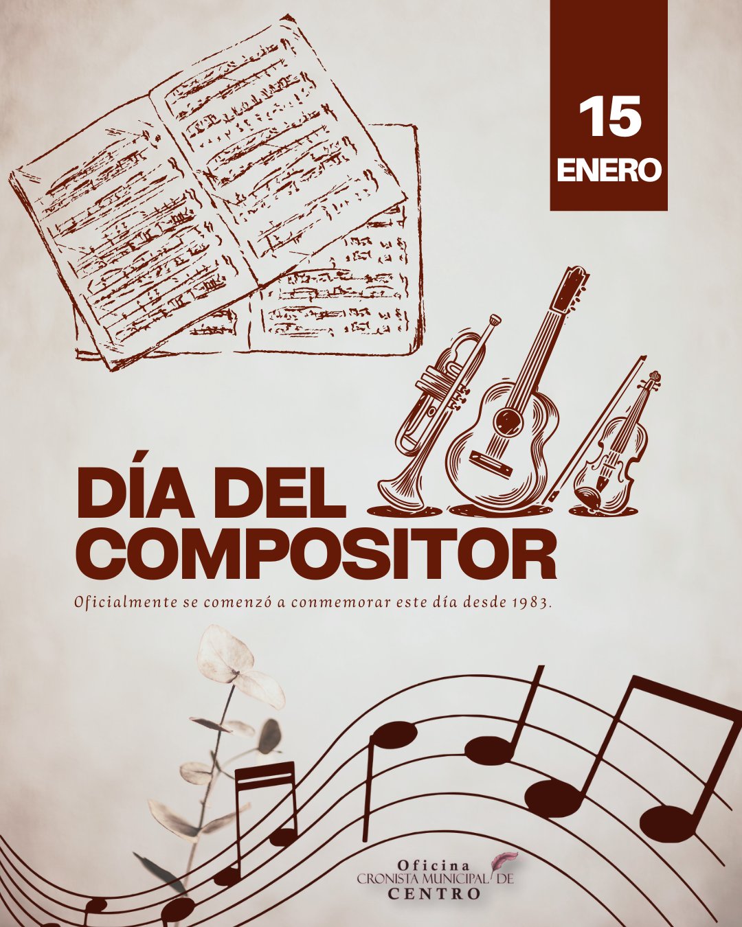 15 enero.- Este día hay que recordar las melodías que más nos gusten, disfrutando las obras de nuestros compositores #Efemerides #SECM #CronistaMunicipal