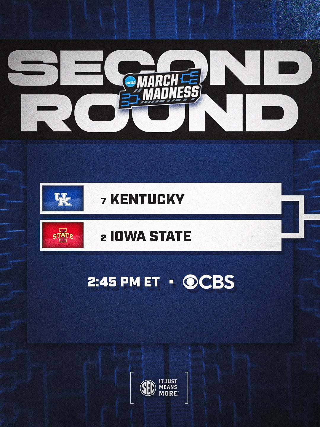 Southeastern Conference @SEC Β· 5d gotta keep the moβ π SECOND ROUND πΊ No. @7 @KentuckyMBB vs. No. 2 Iowa State πΊ CBS #SECMBB@x @MarchMadnessM9Kg 4 1 14 8.8K