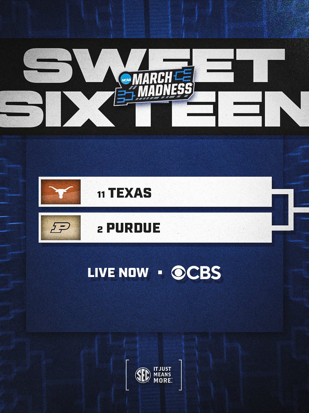 Southeastern Conference @SEC Β· 1d Off & battling in San Jose! πͺ SWEET SIXTEEN π€ No. 1@1 @TexasMBB vs. No. 2 Purdue πΊ CBS #SECMBB@x @MarchMadnessM99J 3 23 8K