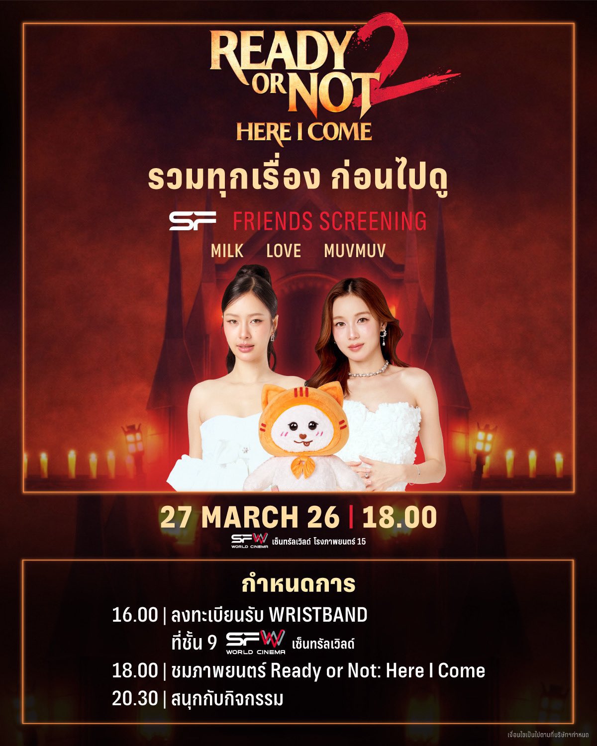 SF Cinema @WeLoveSF · 10h 💥จัดเต็มทุกโมเมนต์ความสนุก! กับ MILK, LOVE, MUVMUV ในรอบพิเศษ #SFFriendsScreening Ready or Not: Here I Come ที่ SFW เซ็นทรัลเวิลด์ #MilkPansa #loverrukk #MUVMUV #SFxMilkLoveMuvmuv #SFxReadyOrNot2 #SFcinema 🍿rn 11 968 1.7K 17.6K