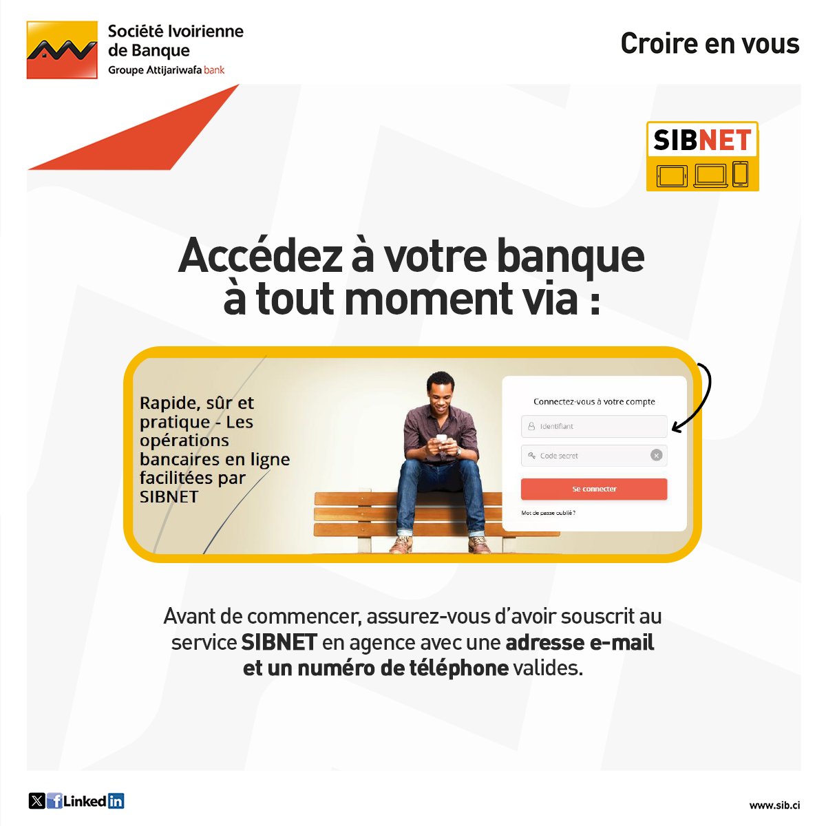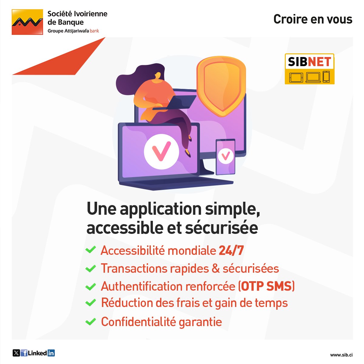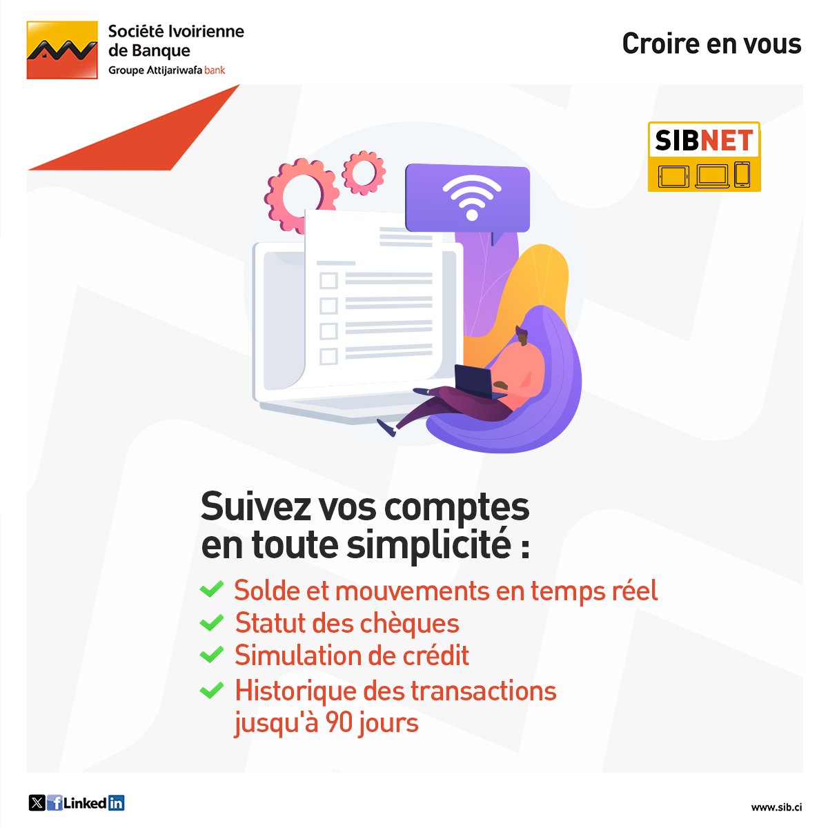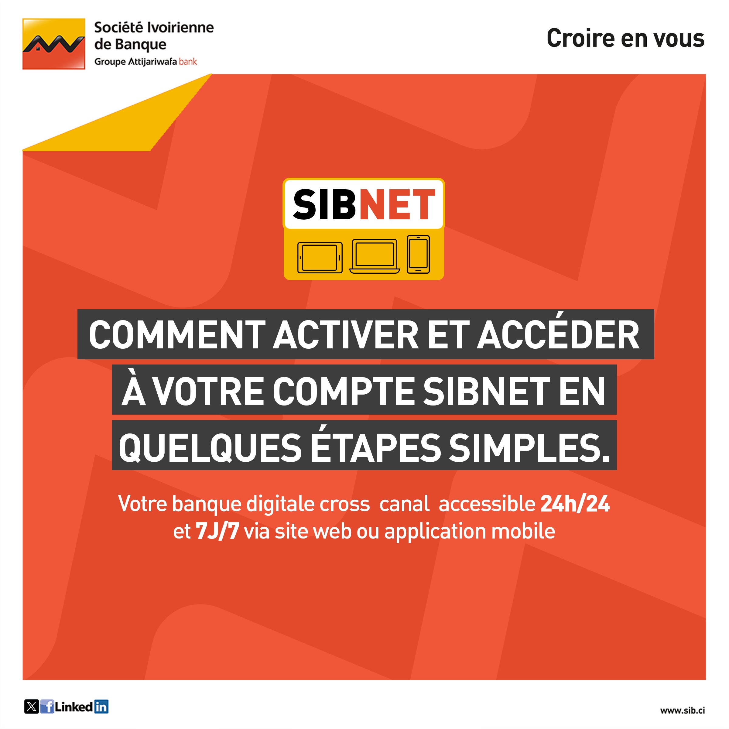 Avec SIBNET, vos opérations bancaires se font en toute simplicité, à tout moment et depuis n’importe quel appareil. ✨