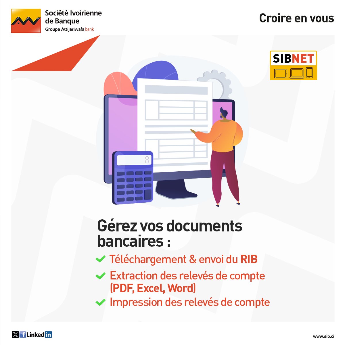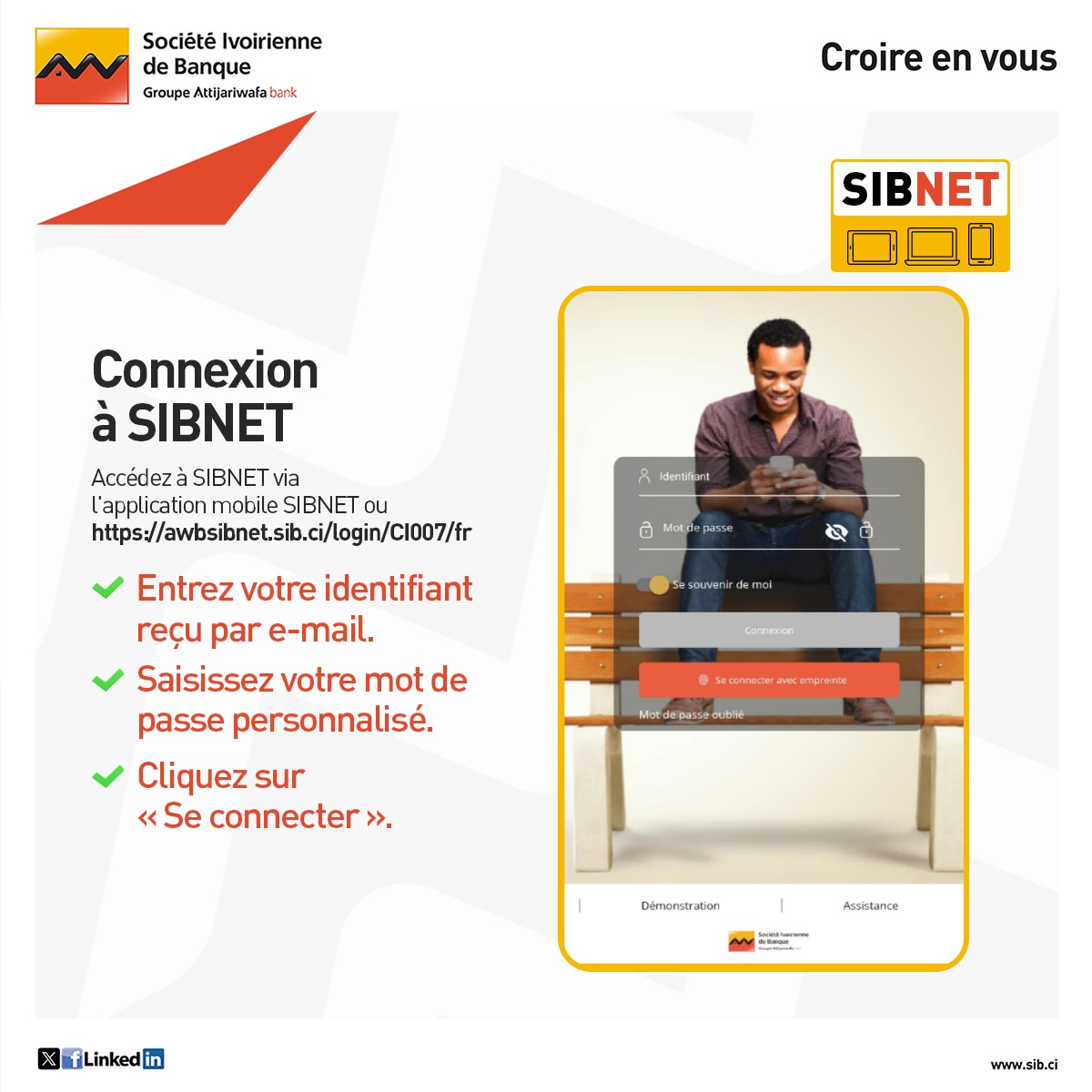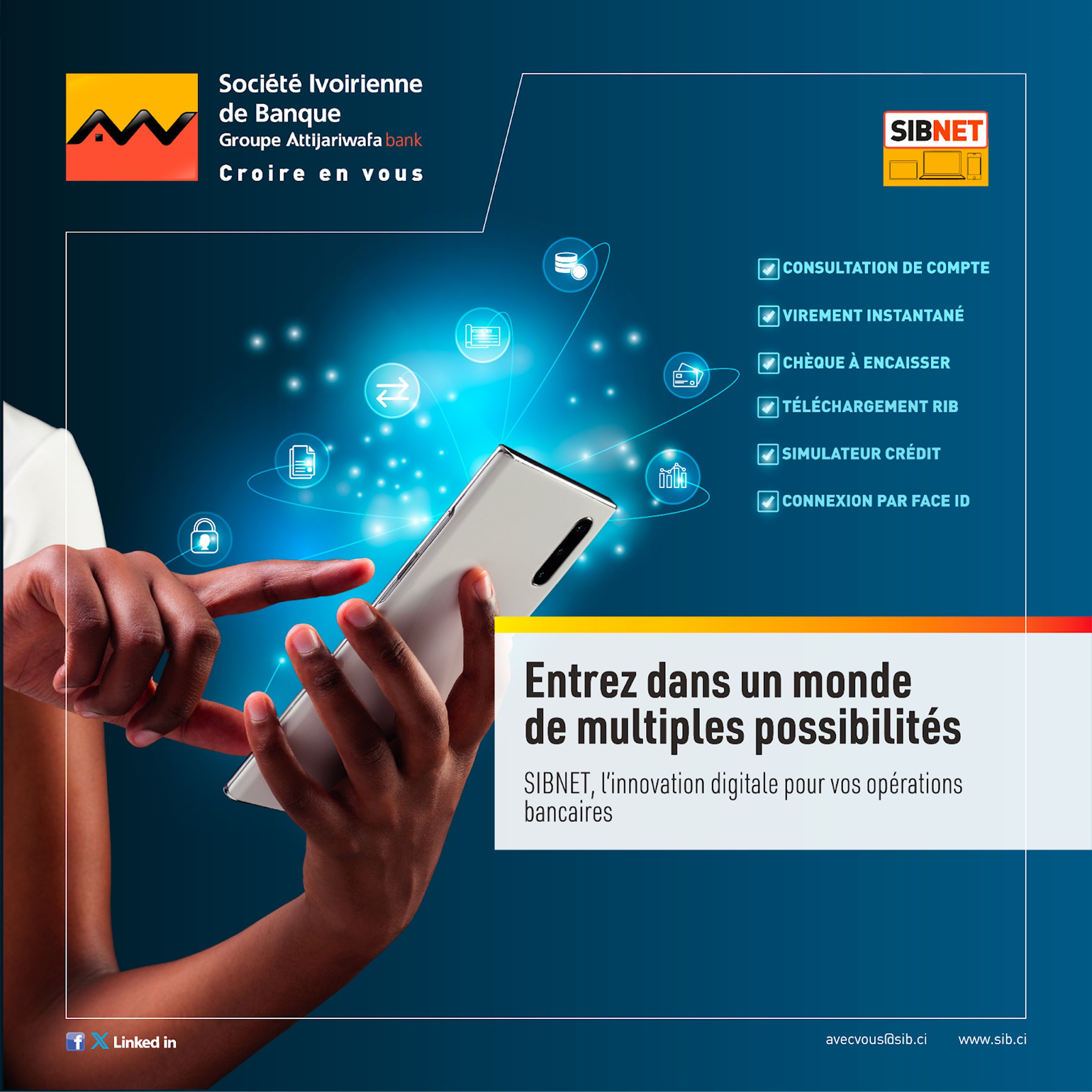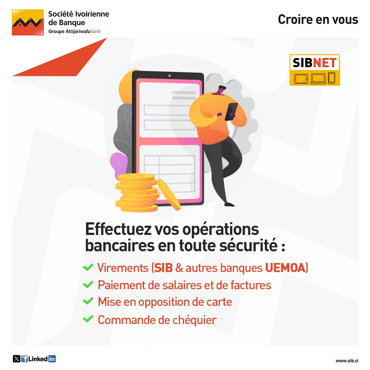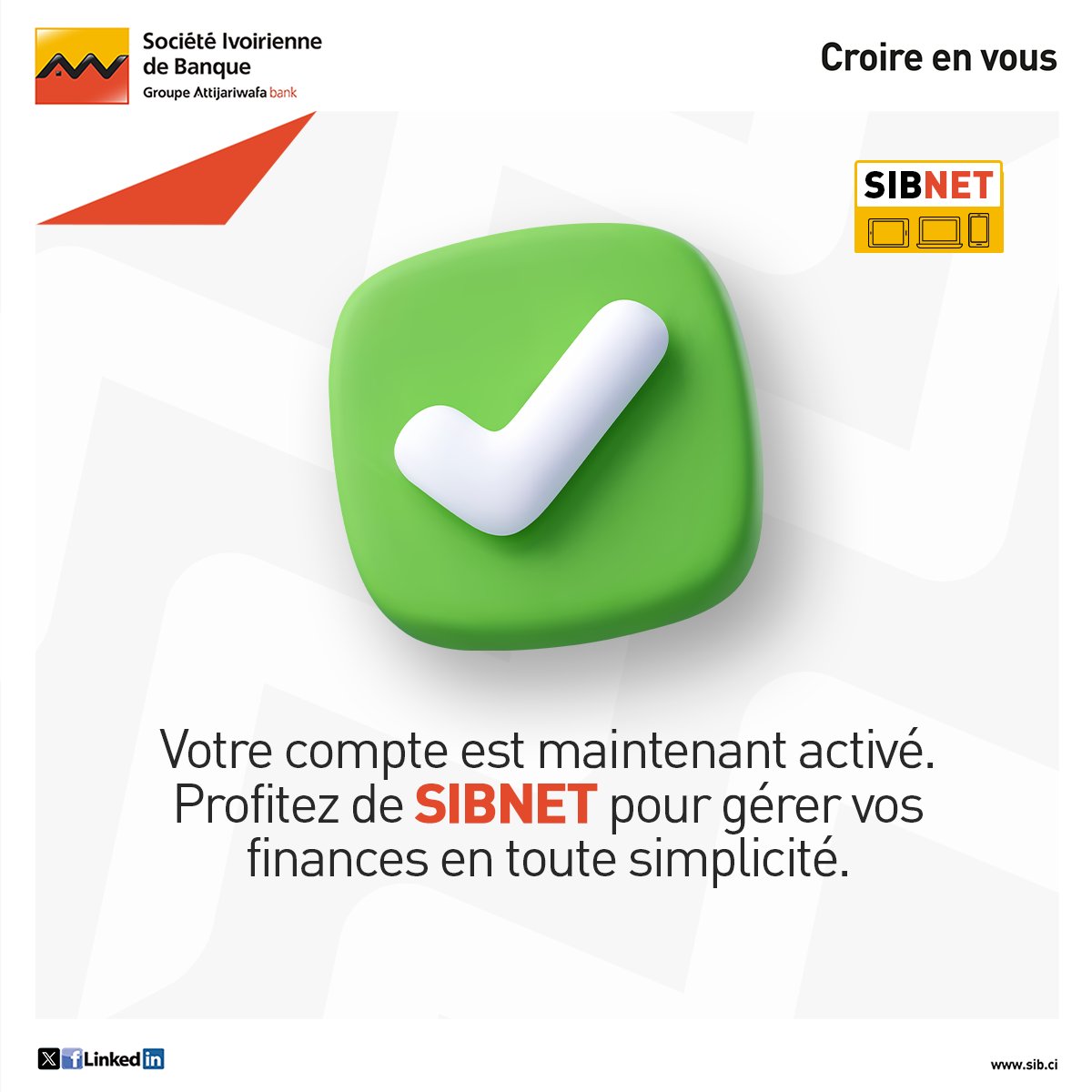 Avec SIBNET, vos opérations bancaires se font en toute simplicité, à tout moment et depuis n’importe quel appareil. ✨