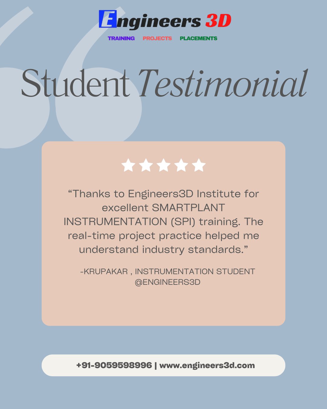 Our student just leveled up with SMARTPLANT INSTRUMENTATION (SPI) training at Engineers3D! Hands-on learning, expert guidance, and industry-ready vibes 🚀 The journey from learner to pro starts here!