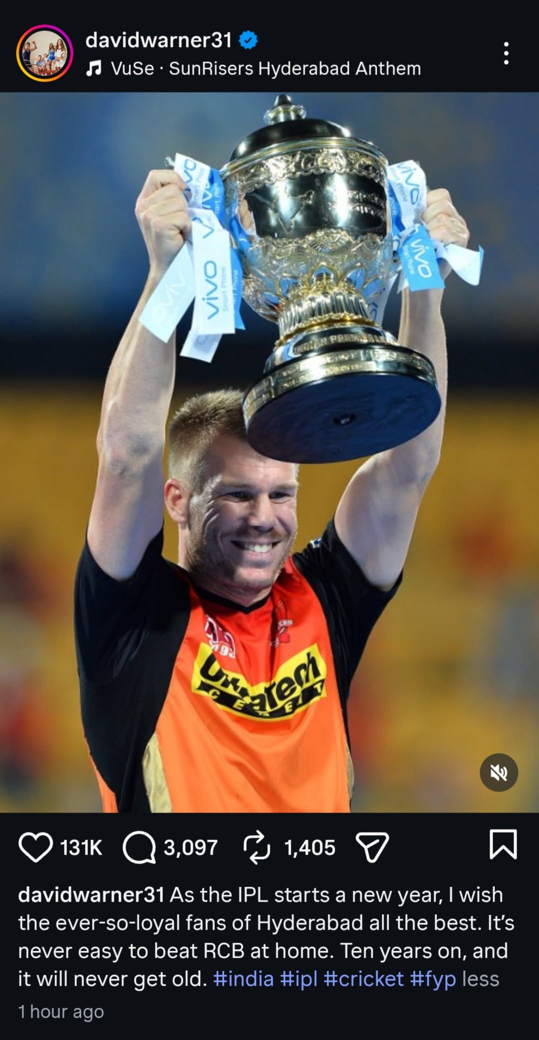 @davidwarner31 we will forever love you and always remember your love for Hyderabad fans no matter what 🥹🧡