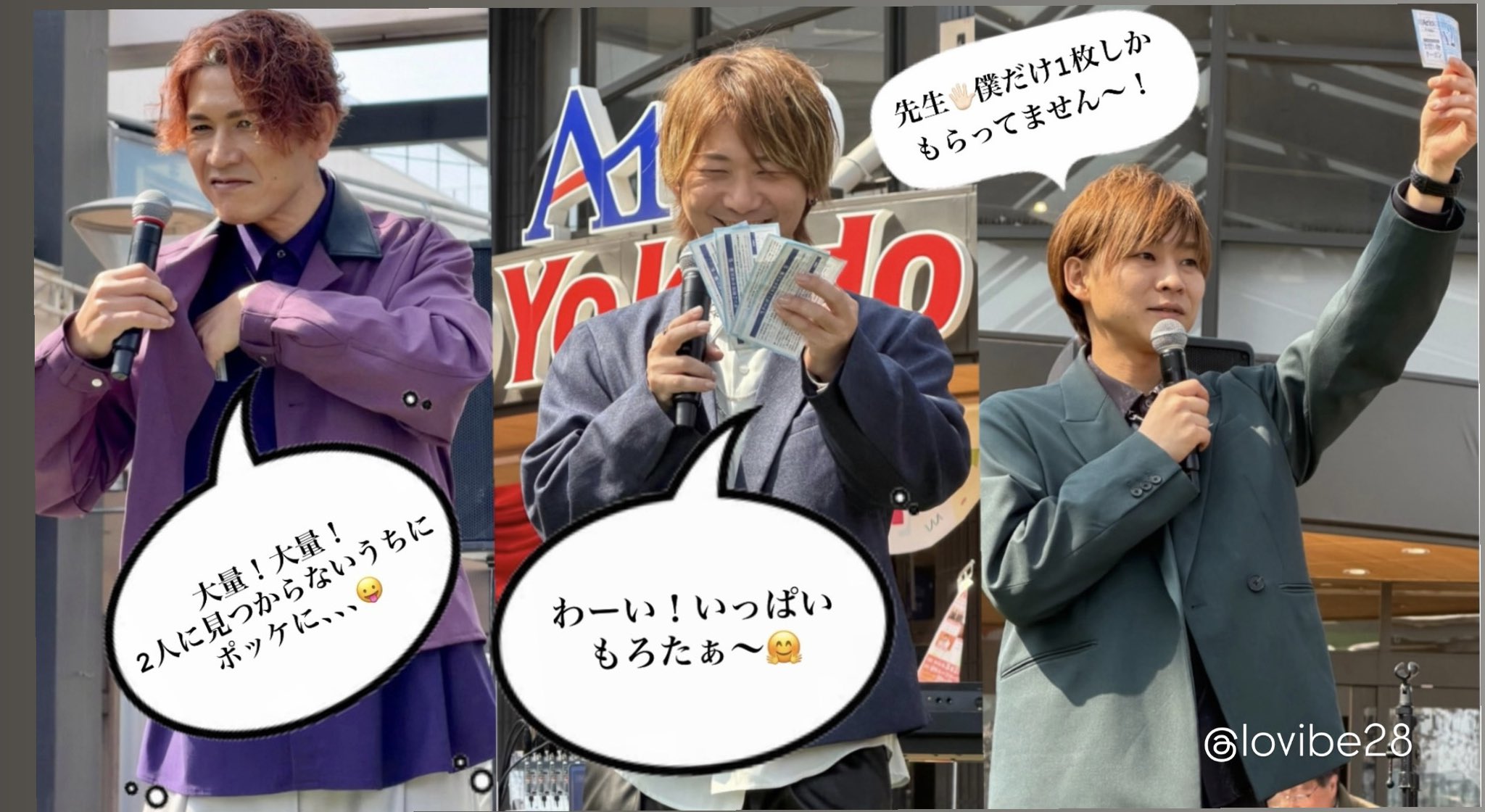 Mami☆💙 @lovibe28 · 1d 今日は店内で1000円以上購入すると200円引きになるクーポンを配ってくれてて、その説明の時のメンバーの表情が三者三様で楽しかったので、勝手に台詞付けて遊んでみました🤣🤣🤣 帰り道🚃長いので暇すぎて😅💦 #ys07A0 2 18 483
