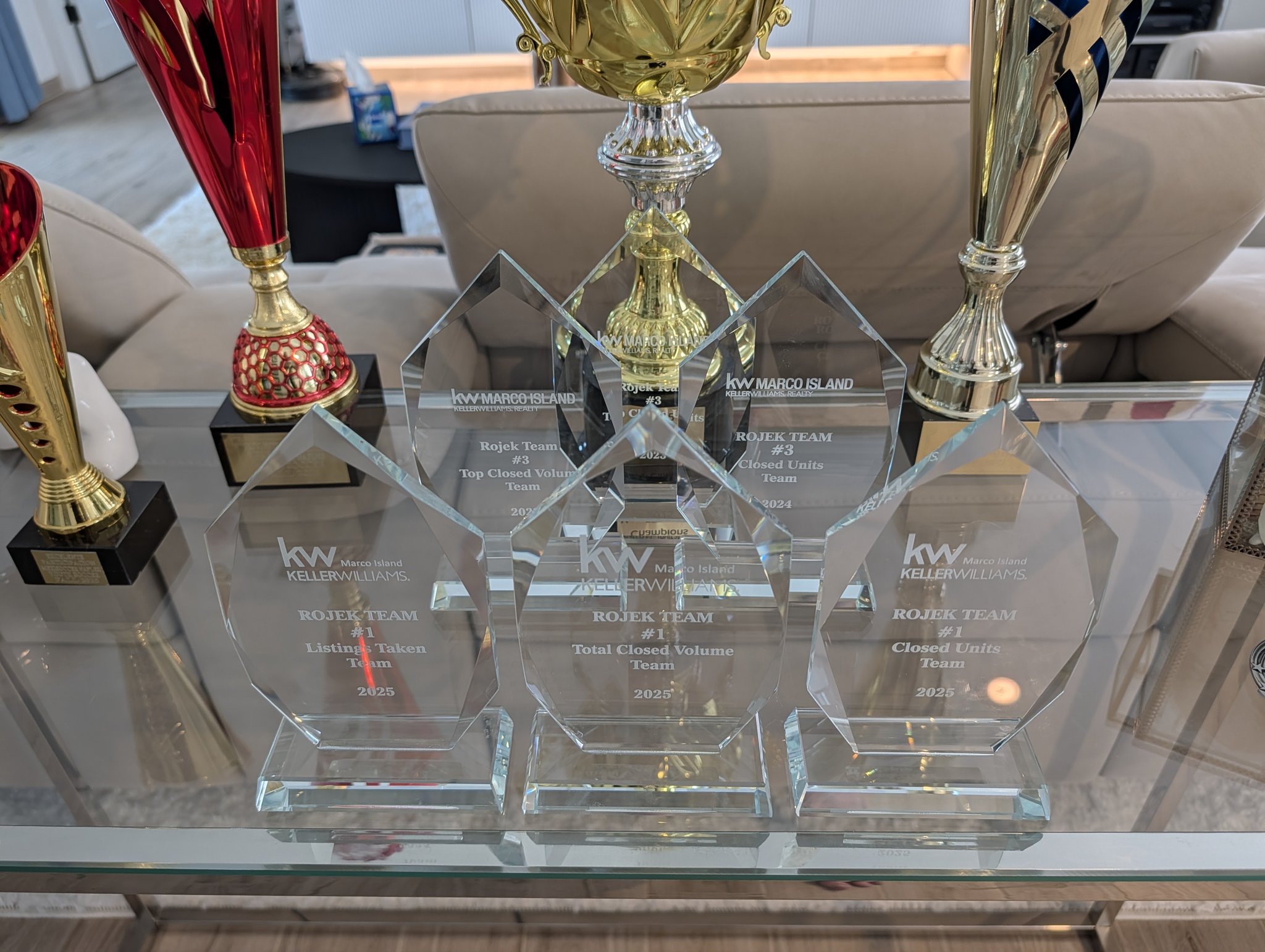 A clean sweep! Rojek REALTORS® took top spot in all team categories at #KellerWilliams #MarcoIsland in 2025: listings taken, closed units and closed volume!