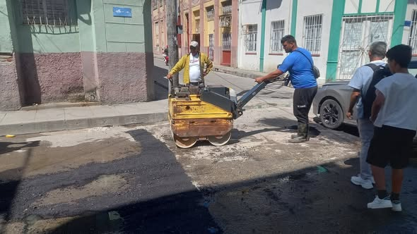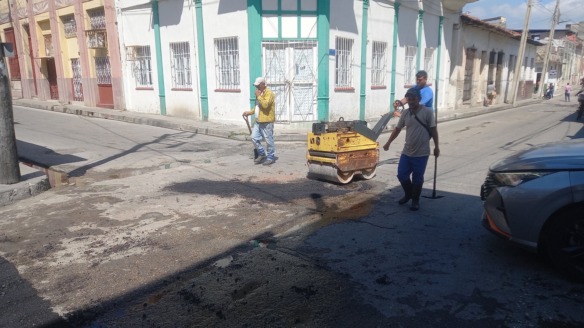 Con mucho esfuerzo se sigue trabajando, ahora se vierte Asfalto en el centro de #SantaClaraEnMiCorazón , para seguir avanzando en el programa de Imagen en #VillaClaraConTodos.