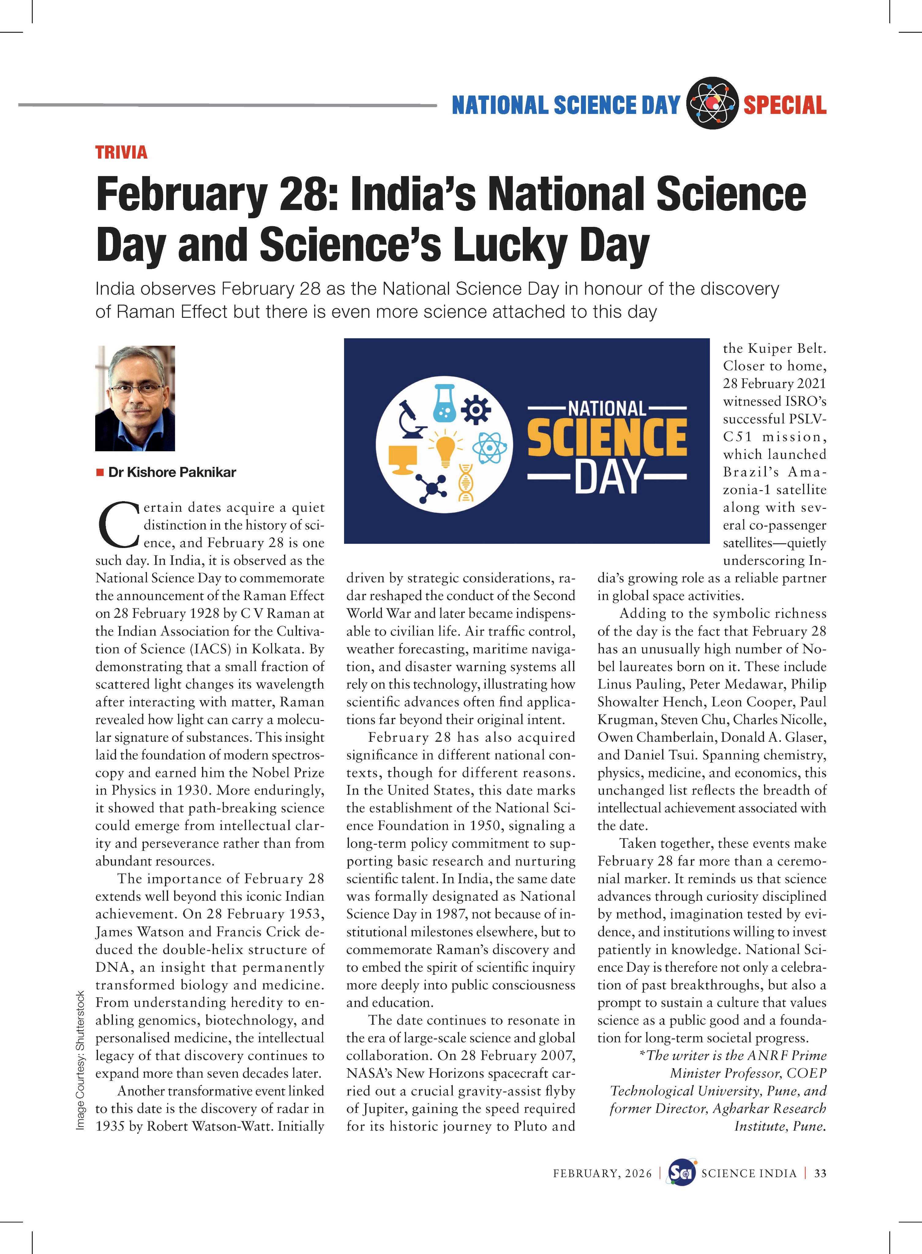 February 28 marks the Raman Effect and several remarkable milestones in global science. The piece reflects on why this date may be called “Science’s Lucky Day.”