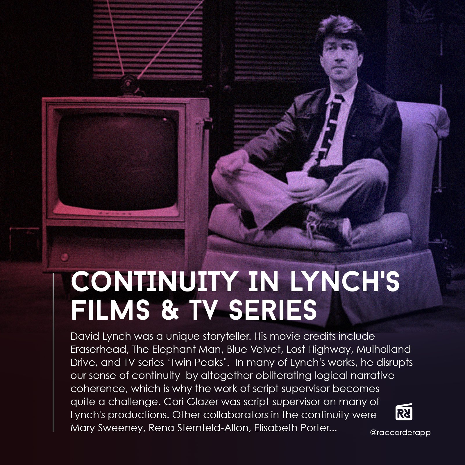 #davidlynch#coriglazer#scriptsupervisor#twinpeaks#raccorder