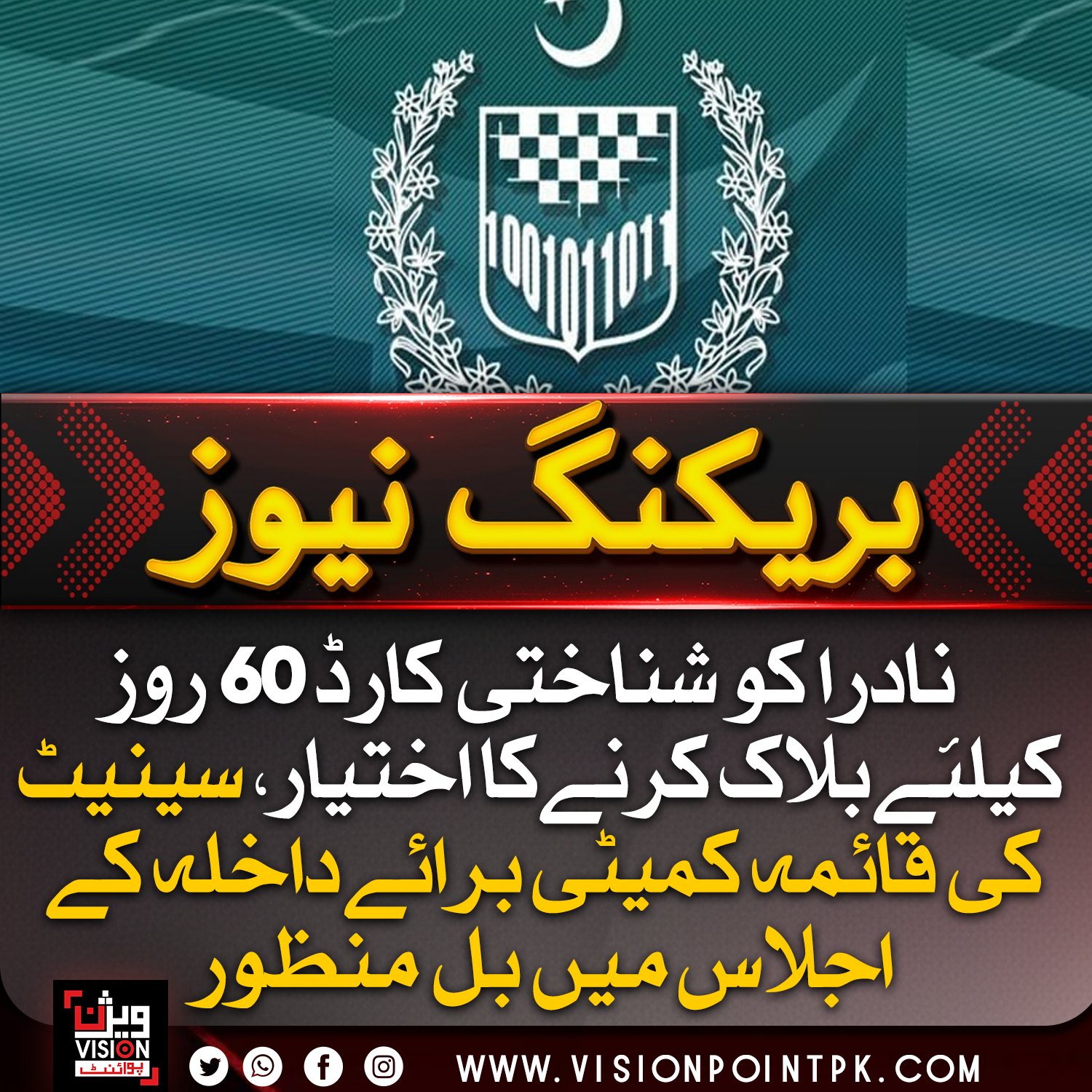 نادرا کو شناختی کارڈ 60 روز کیلئے بلاک کرنے کا اختیار دینے والا بل قائمہ کمیٹی سے منظور، سیکیورٹی خدشات کے پیش نظر اہم قدم قرار۔
