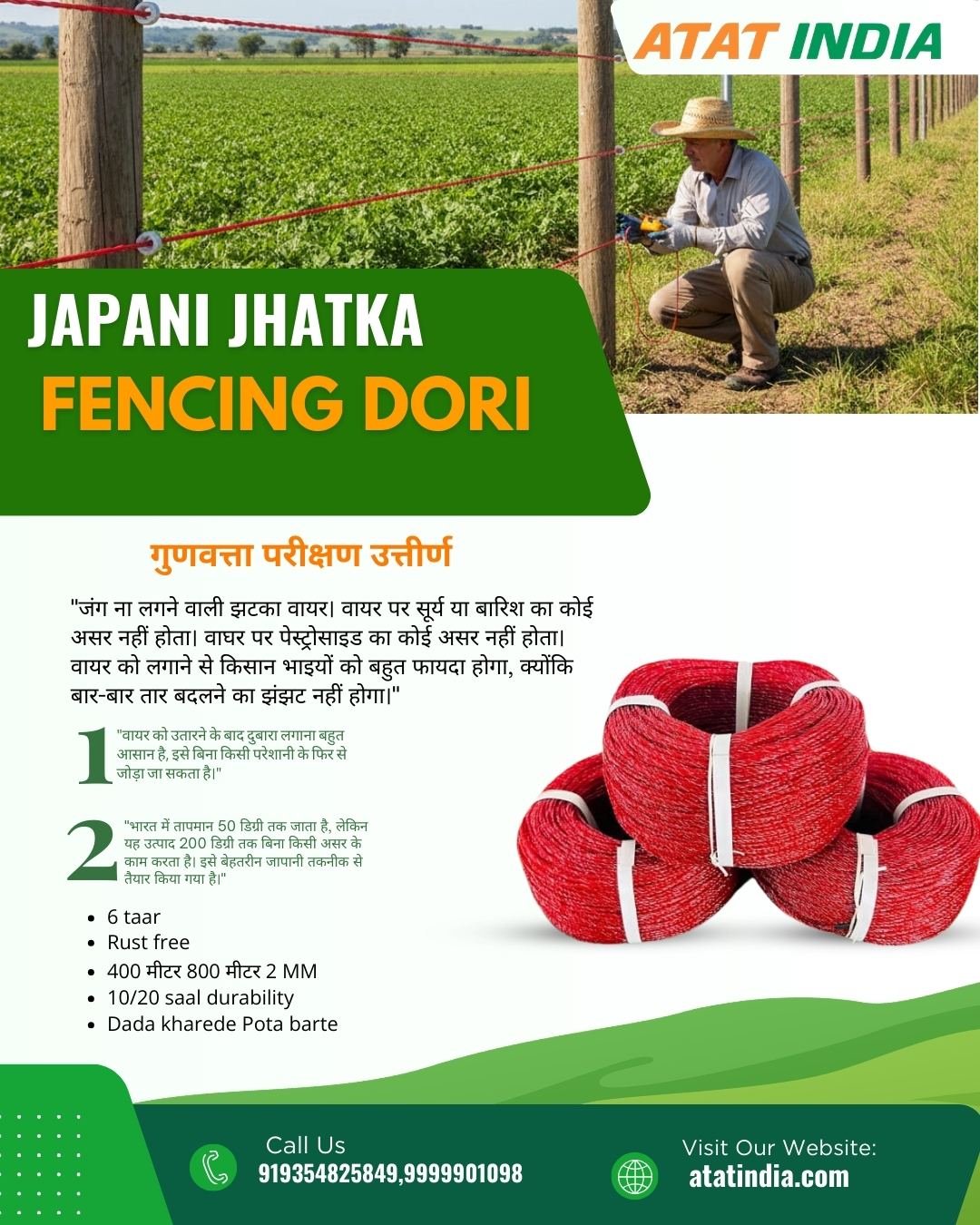 ATAT INDIA @AtatIndia · Mar 19 High-voltage Japani Jhatka fencing dori designed for powerful security and protection. #JhatkaMachine #FencingWire #SecuritySolution #FarmProtection #ElectricFence #SafetyFirst #AgricultureIndia #PlotSecurity #HighVoltage #DurableDesign 1