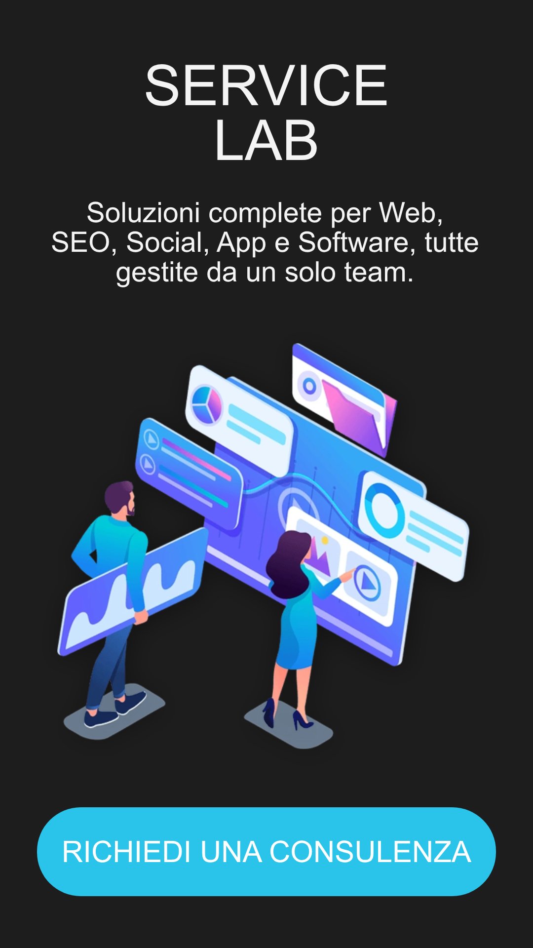 Trasforma la tua visione in realtà digitale. Service Lab crea soluzioni su misura per il tuo business, combinando innovazione e tecnologia per un successo garantito. Contattaci per iniziare il tuo percorso di trasformazione.