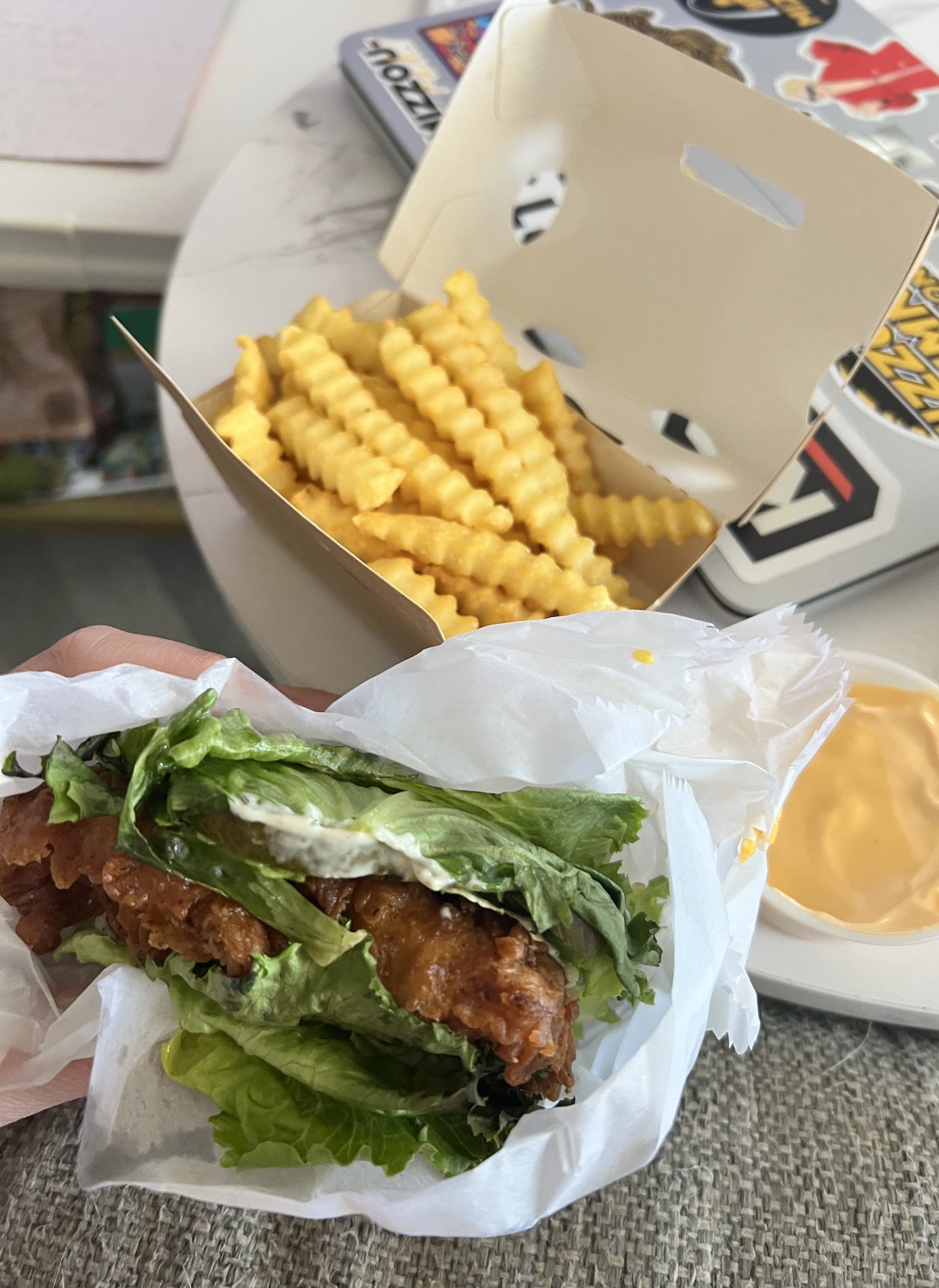 At the @shakeshack grand opening and we run into a former Fox Run resident 😂