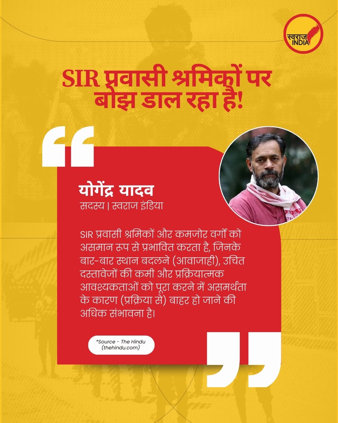 “SIR प्रवासी मज़दूरों पर बोझ डालता है, जबकि व्यवस्था अपनी जिम्मेदारी से बच निकलती है।”