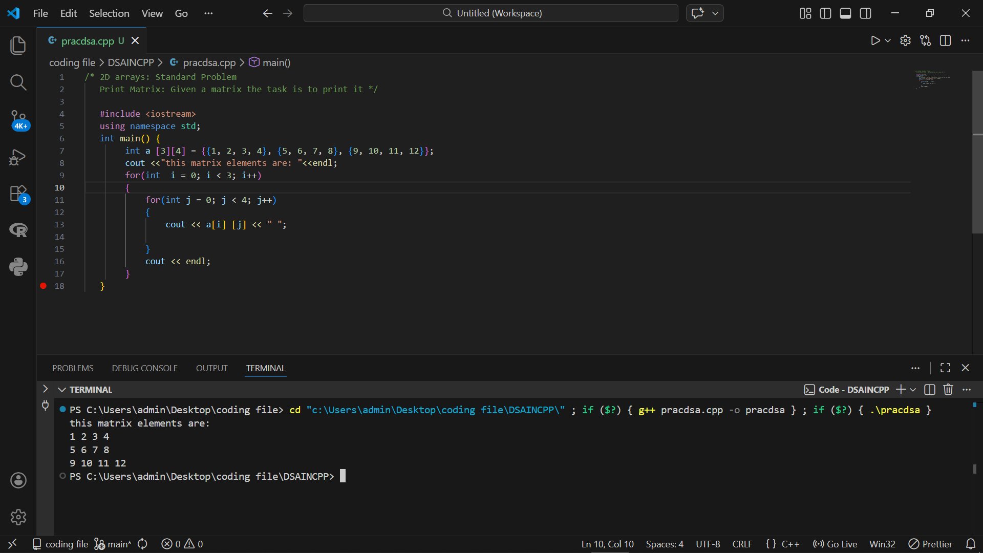 Solved: Print all elements of a 2D matrix 💻