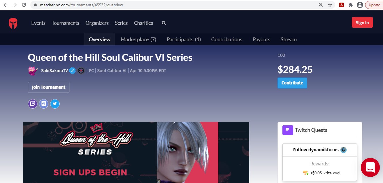 The Matcherino is currently almost at $300. Thank you for donating to our #soulcalibu Queens. Loser finals is happening now for qualifiers 1.