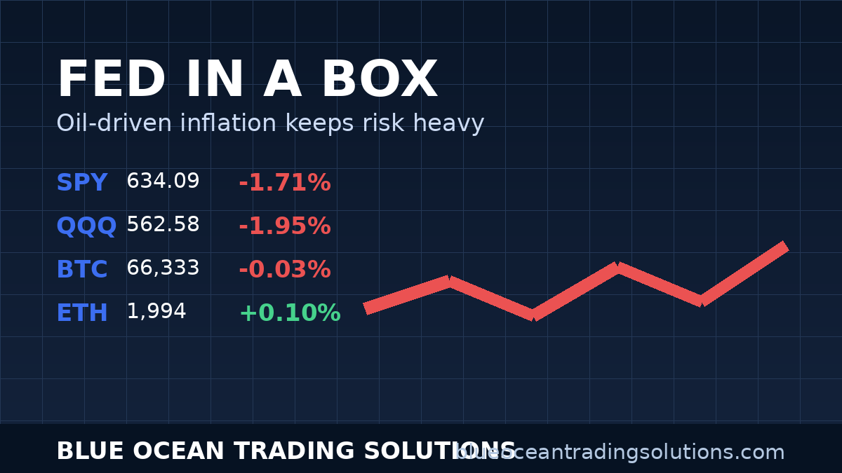 Risk tape still says down. SPY 634.09 (-1.71%) / QQQ 562.58 (-1.95%). With oil shock risk, the Fed is boxed in and dips can keep getting sold. Bears control below SPY 642; thesis breaks on a reclaim. #SPY#trading
