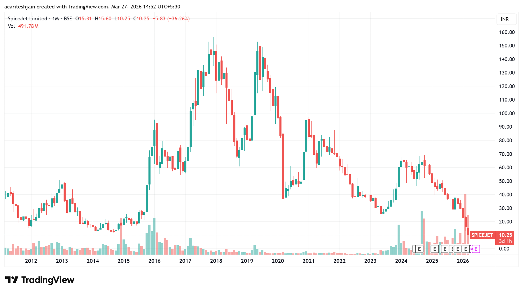 Spice Jet: Warned multiple times for this share at 37/25/14. All set to go to two digits mark.