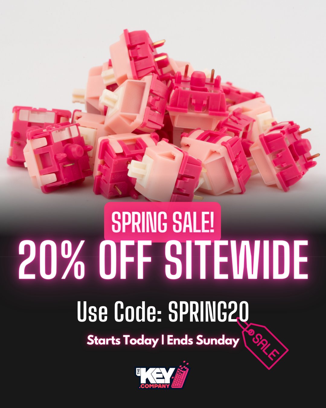 The Key Company @TheKeyCompany · Apr 5, 2024 🌸 Spring Sale is ON! 🌼 Get 20% off sitewide with code SPRING20 until Sunday 11:59 PM. Refresh your setup this weekend with the perfect keyboard or keyset. Don't miss out! thekey.companyRXI #SpringSale #SPRING20 #TheKeyCompaXyK 1 4 1.9K