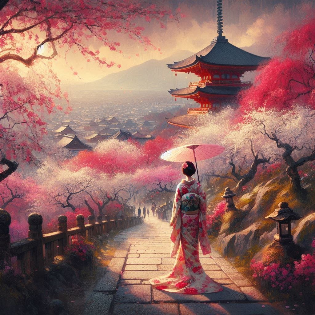Petals of spring rise with the wind, and a butterfly kite dances like a fragment of an ancient dream. 🪁��