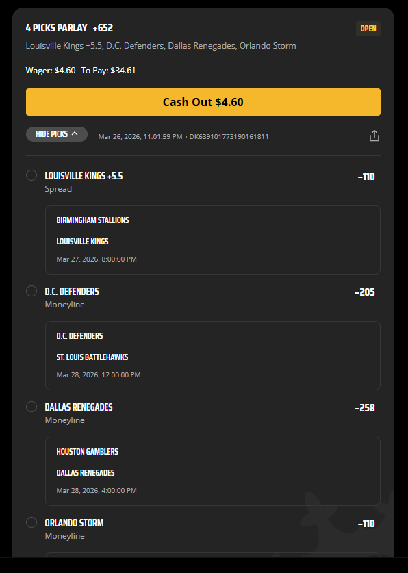 HOU Gamblers @ -7 DAL Renegades