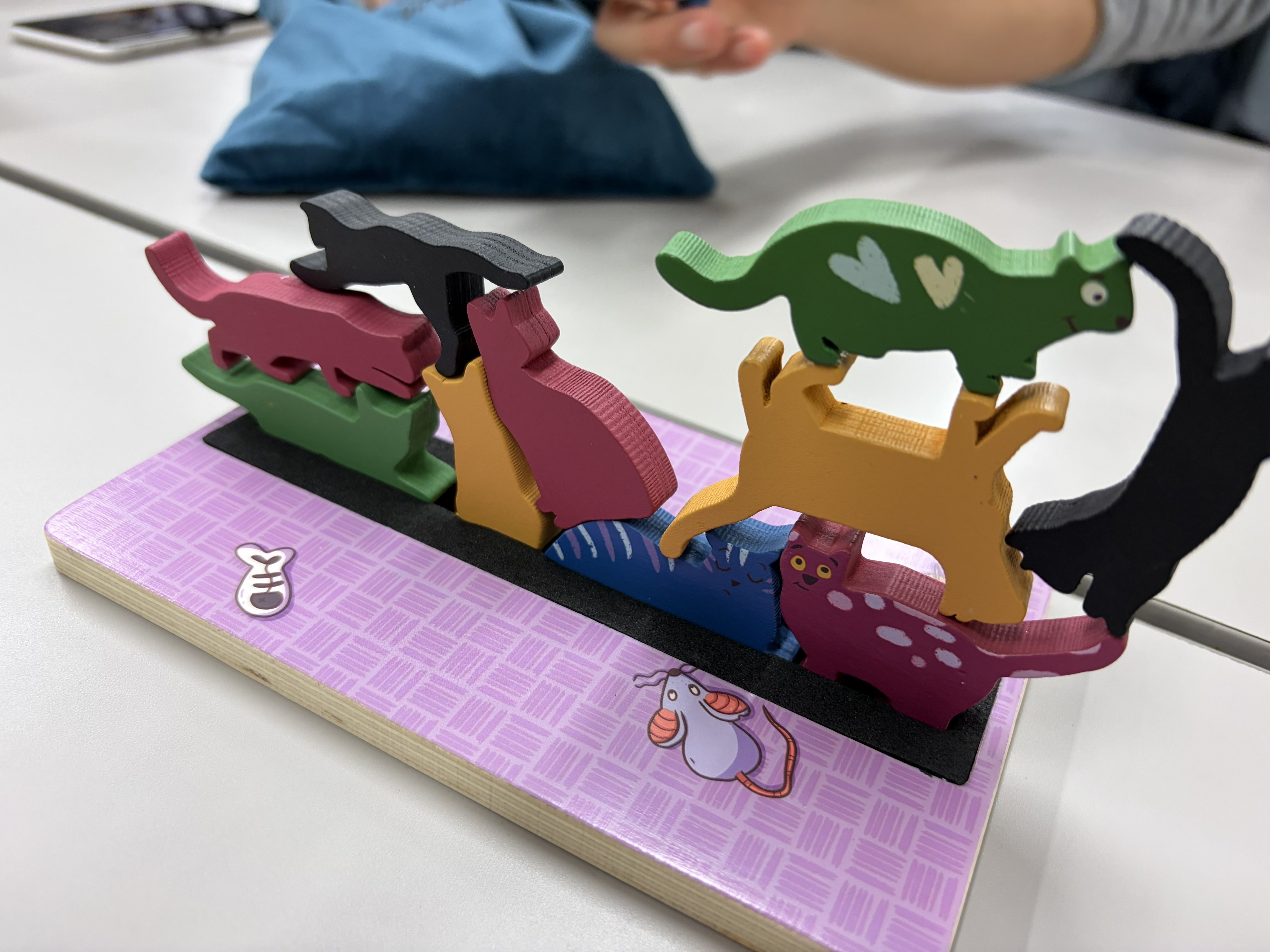 2026/1/24 #懲りずにくろめ会:#StackO'Cats 猫は固体(確信)←4人戦 袋引きの🐈を積むだけ。床までの最少匹数が都度“減点”、崩したらそれも減点。 当たりkick。やらせたいことを実現する最小限のルール、妥協を感じさせない造形、PLに与える裁量、褒めるしかない。曲芸が許されてるのも非常に良い。2