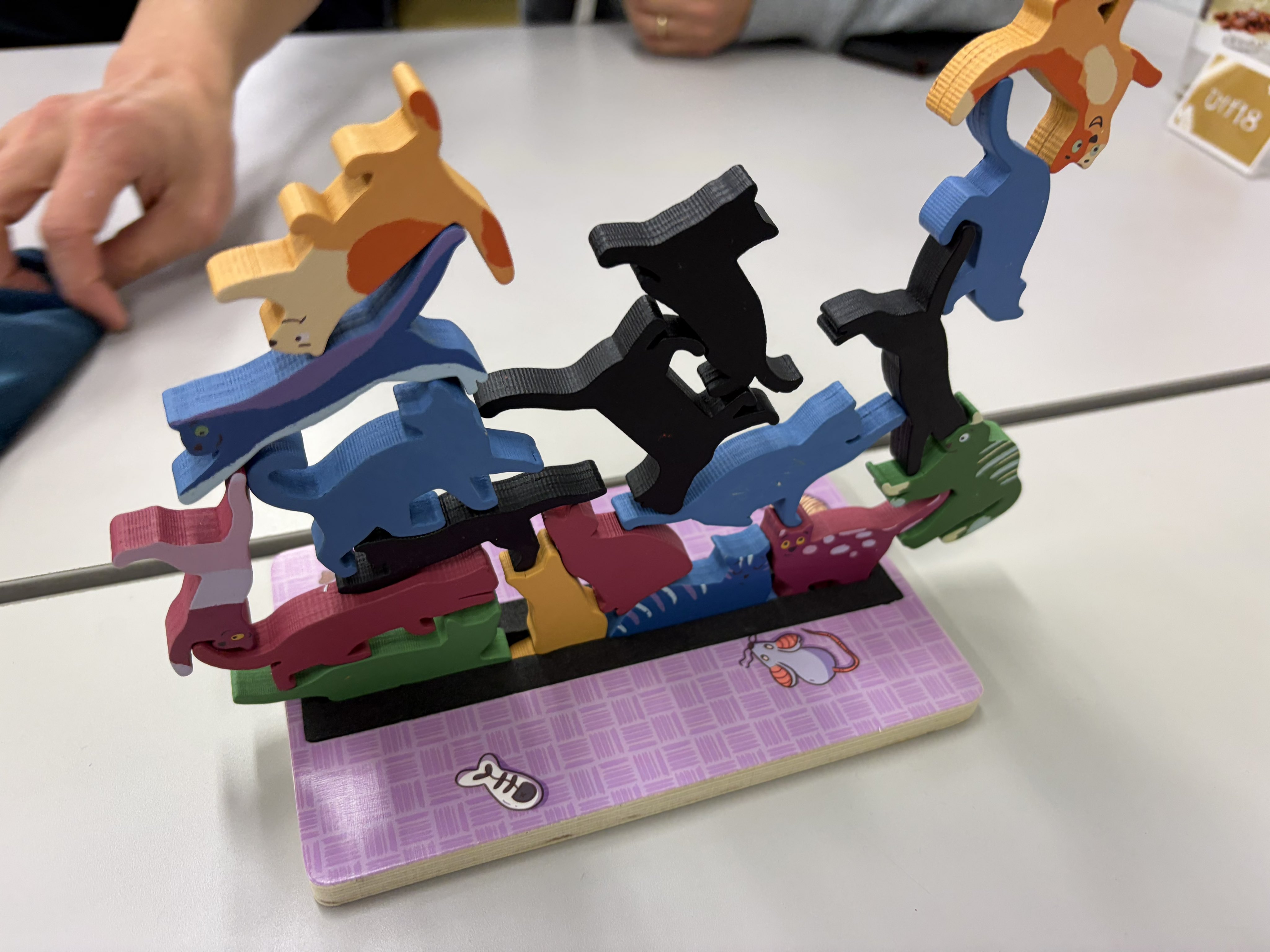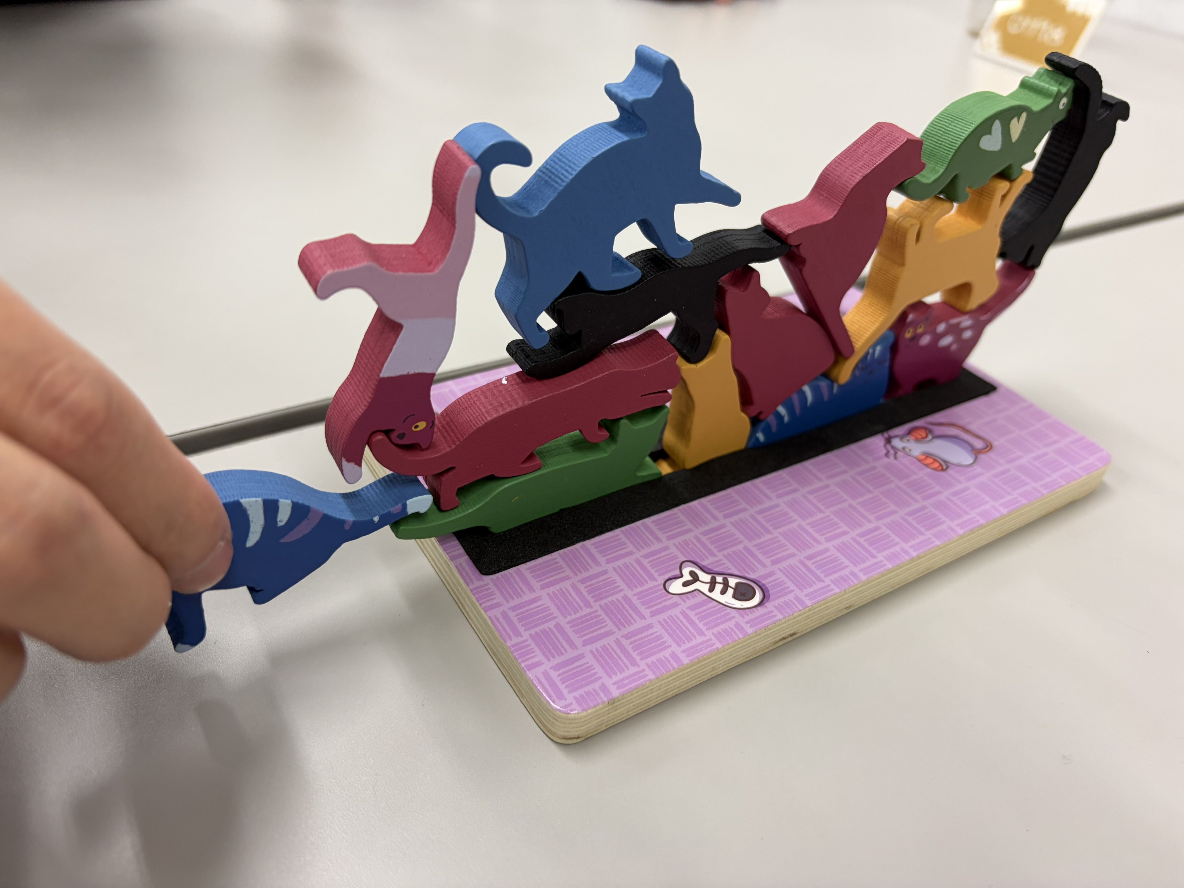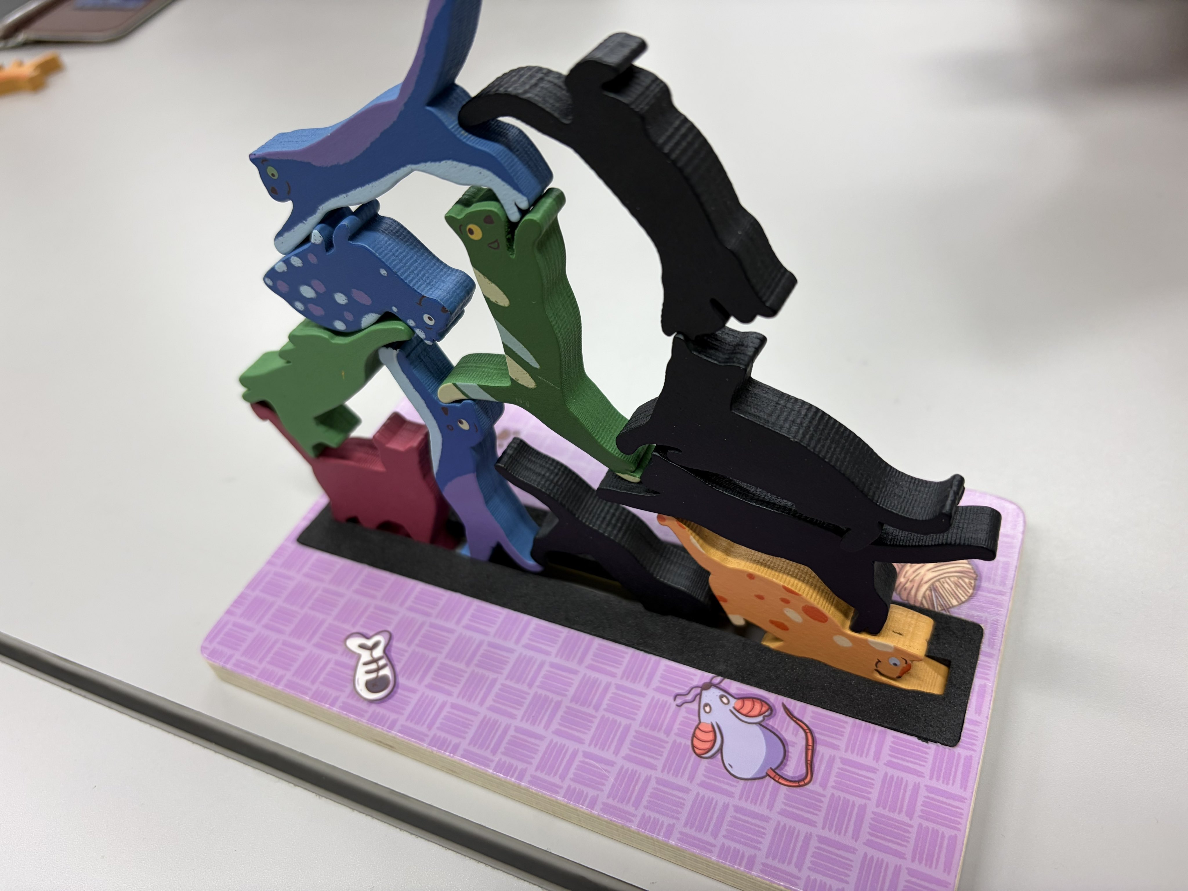 2026/2/1 #新宿クローズ:#StackO'Cats 🎪←4人戦 別に追求したわけでなくても、程よいところでちゃんと崩れるのは美点。ただ時計回りの呪いは多少あるので、一定ルールで逆回転とかでも良い。 加点制ルールもあったから、次回はそっちでも良い。というかそっちの方が高く積むモチベになって良さそう。i