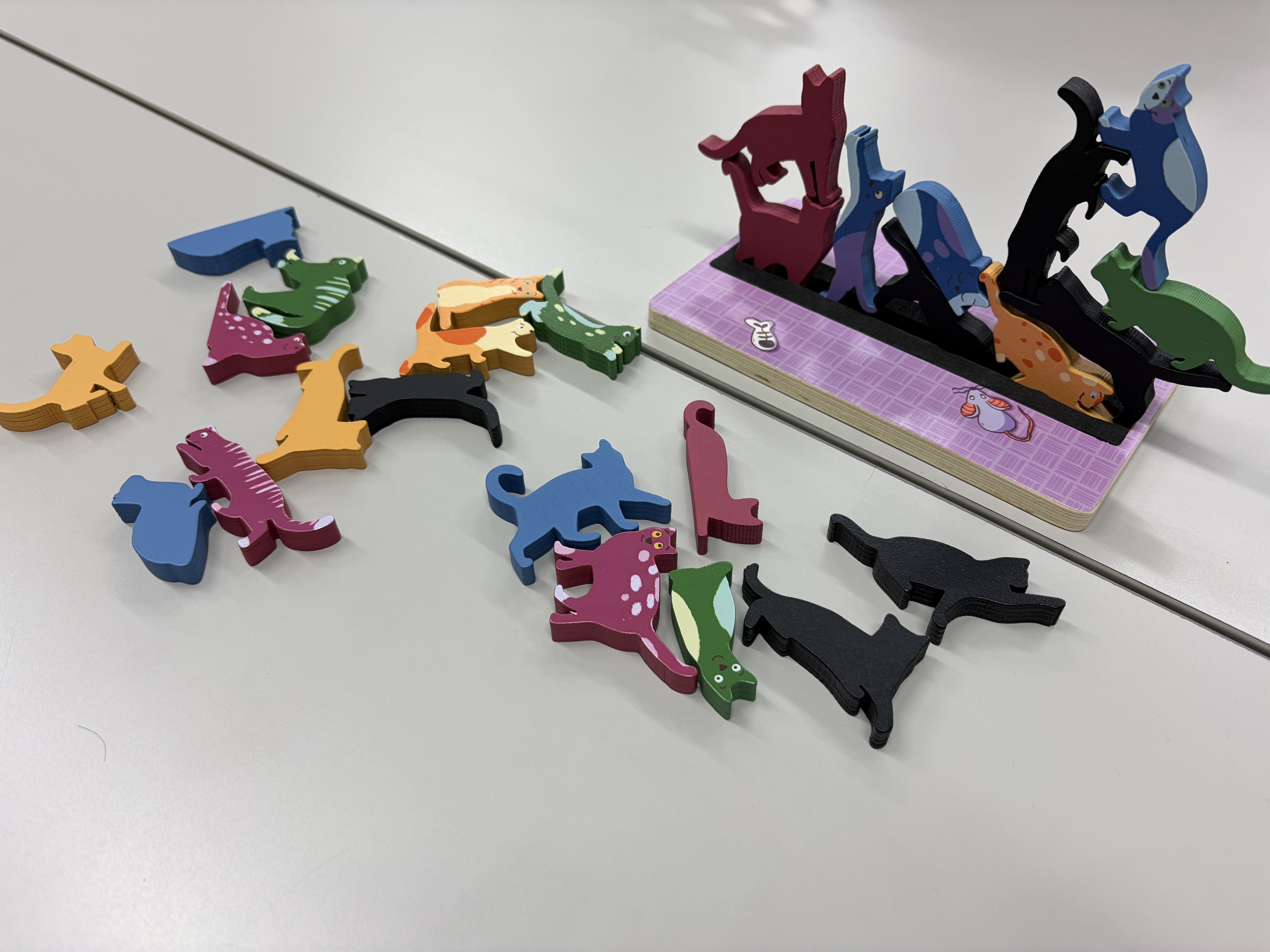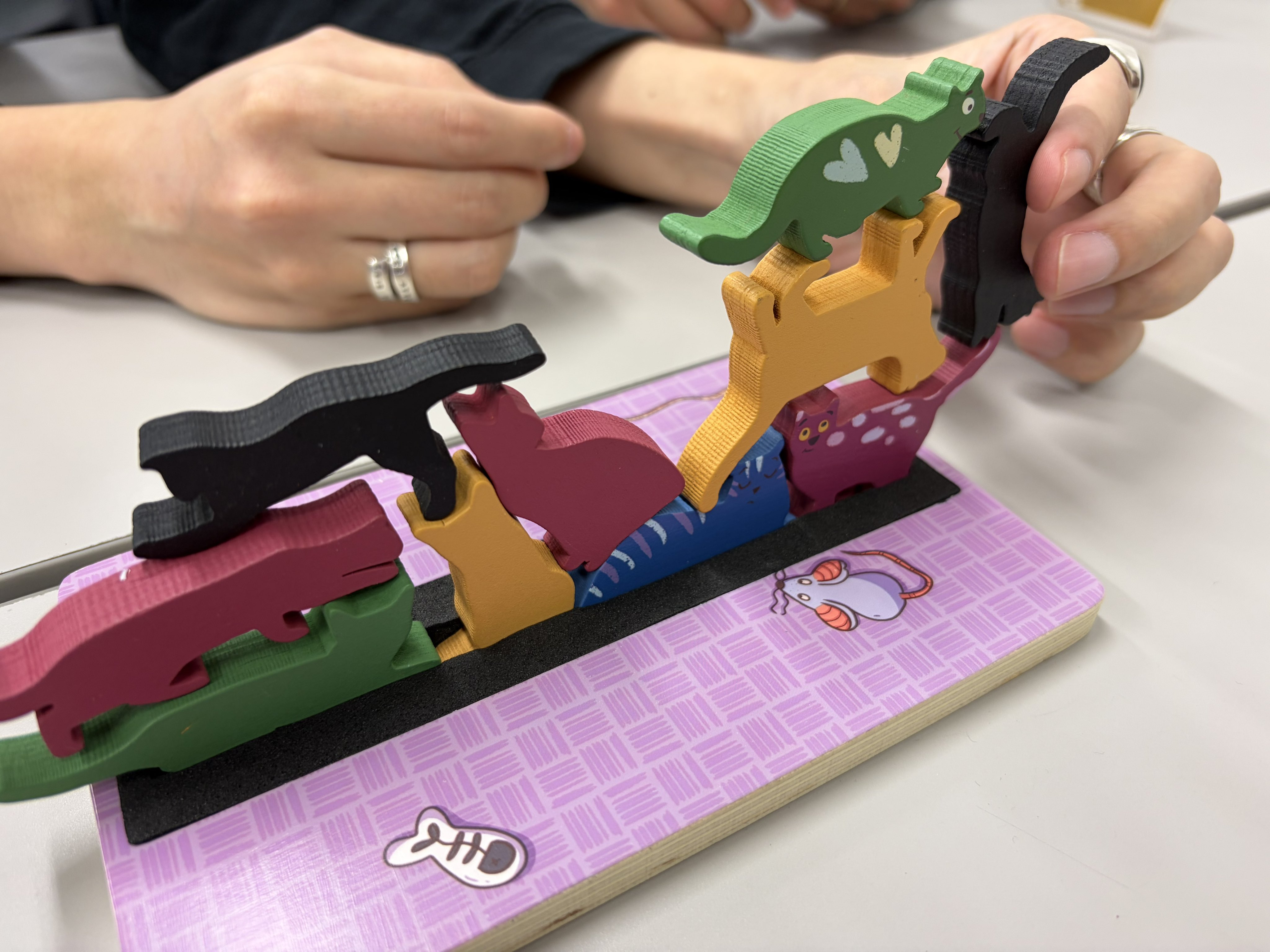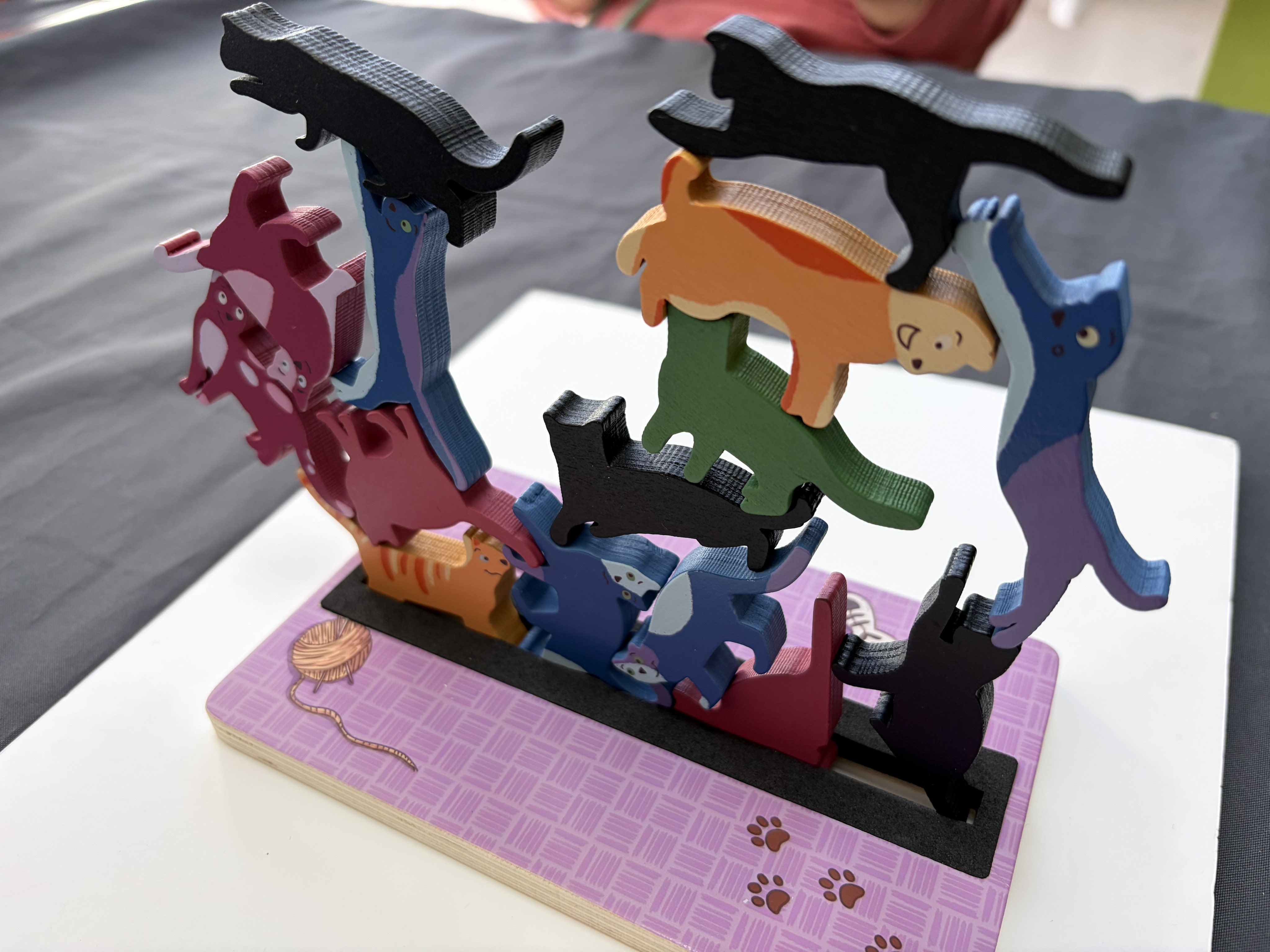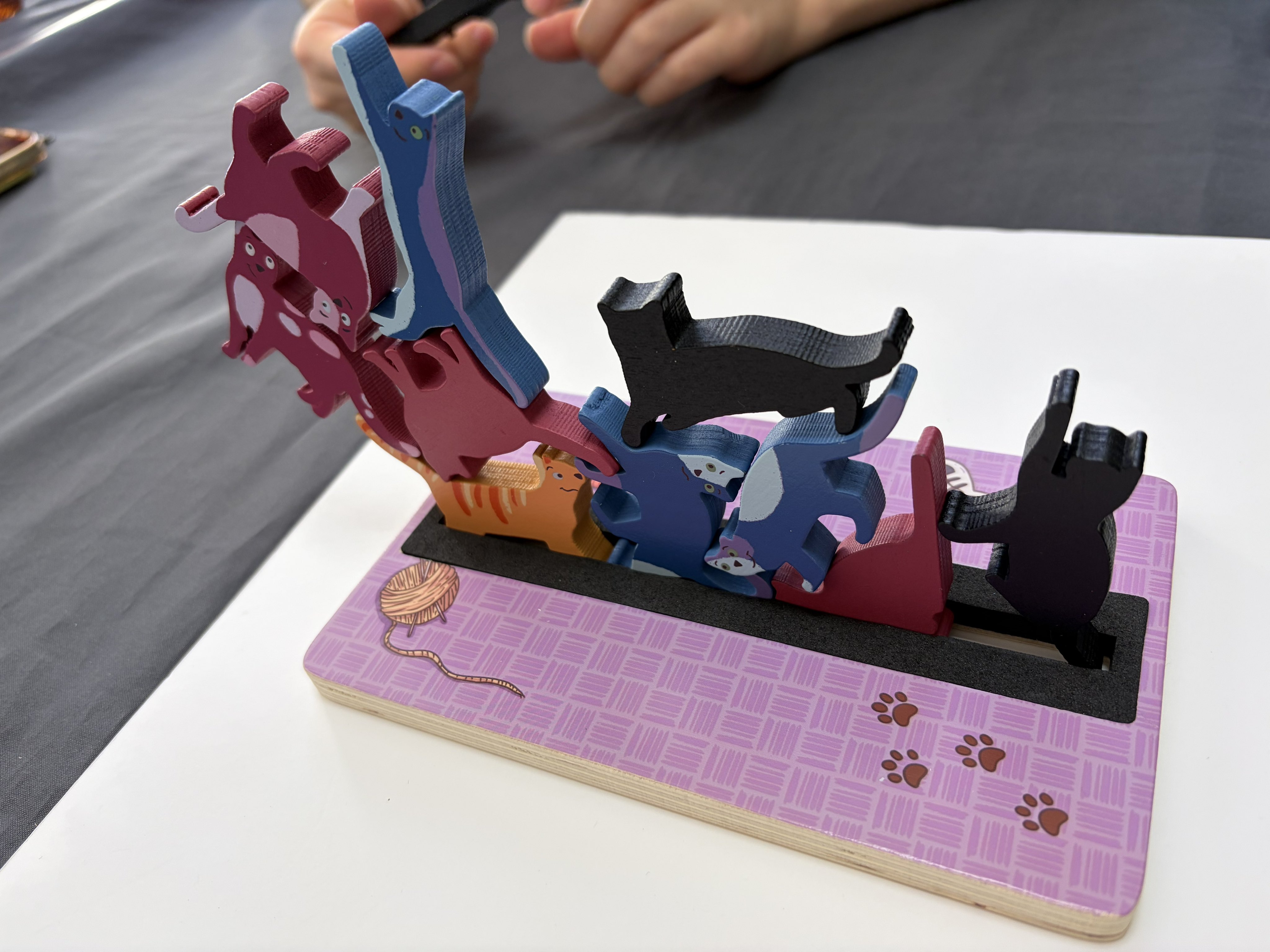 2026/2/1 #新宿クローズ:#StackO'Cats 🎪←4人戦 別に追求したわけでなくても、程よいところでちゃんと崩れるのは美点。ただ時計回りの呪いは多少あるので、一定ルールで逆回転とかでも良い。 加点制ルールもあったから、次回はそっちでも良い。というかそっちの方が高く積むモチベになって良さそう。i