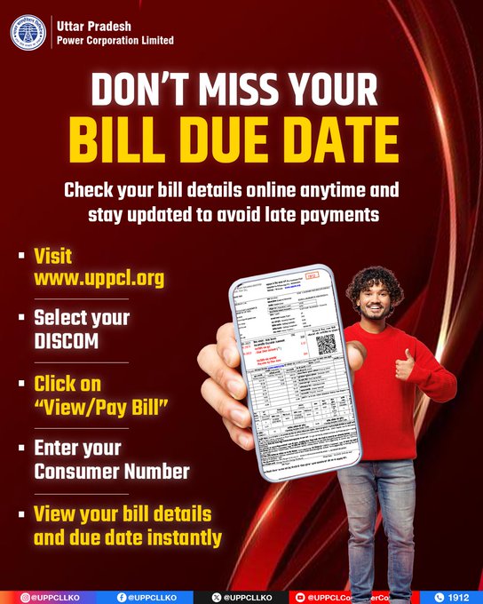 Stay one step ahead and never miss your electricity bill due date. Check your bill anytime on the UPPCL website quick, easy, and convenient. #UPPCL #PuVVNL #StayUpdated #SmartUsage