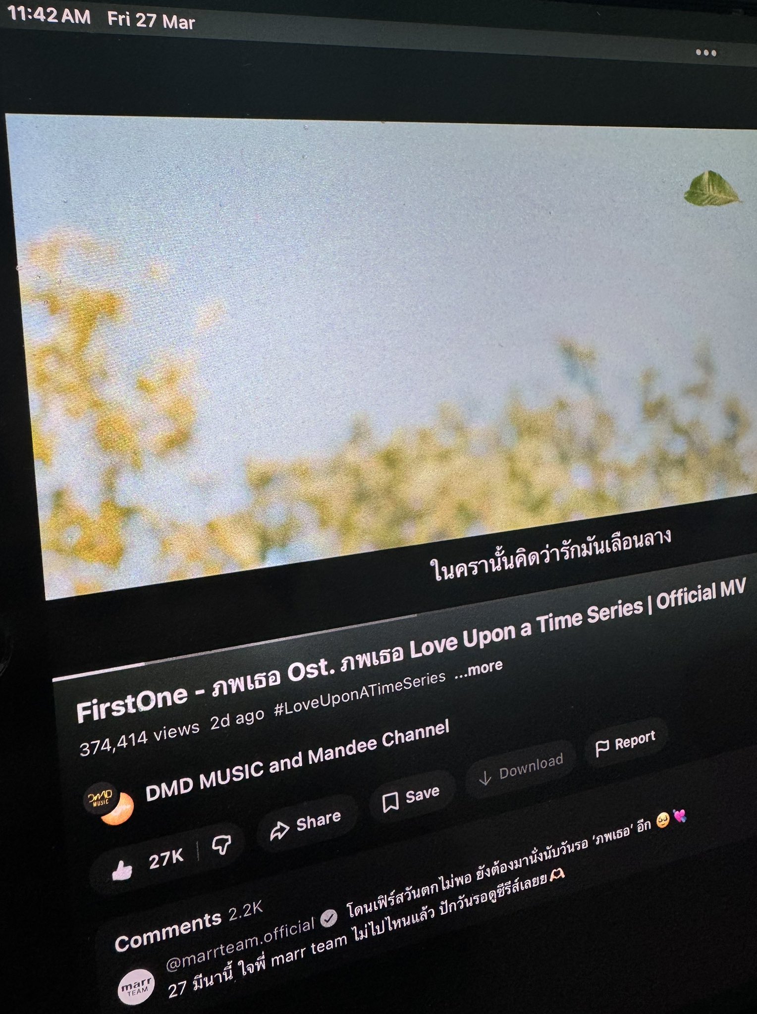 2. สตรีมเพลง First Love ผ่าน Spotify (ห้าม Mute เสียงนะคะ)