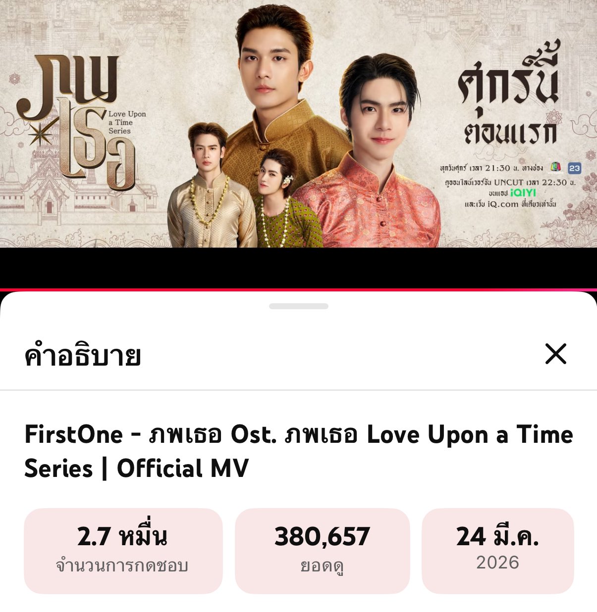 ทุกคนคะ ช่วยพี่กระจายข่าวด้วยนะคะ รางวัลนี้สำหรับสายสตรีม Spotify ค่ะ ซึ่งยอดเราตกมากกก แดงสุด ๆ วันนึงขึ้นหลัก 1,000 เองค่ะ ซึ่ง Spotify นับเป็น 20% เลยยะคะทุกคน