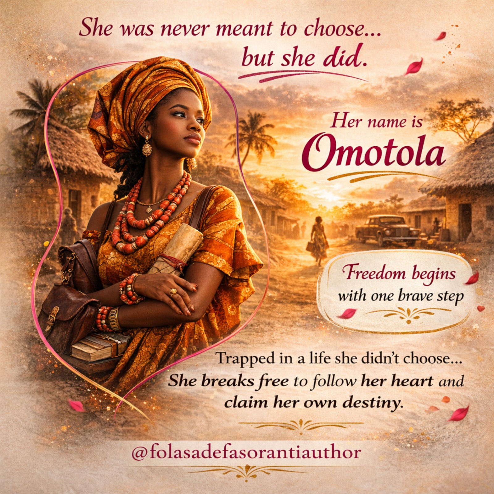 Folasade Fasoranti @folasadeauthor · 2d Not every cage has bars. Some are built with expectations. She walks away, risking everything, just to breathe freely for once. #freedomstory #breaktradition #strongfemalelead #romancefiction #inspiredliving #bookpromo #courageous #readnow 4
