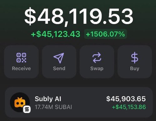 14.53X RETURN UNLOCKED! 🚀💥 I'm making it look easy with $SUBAI! 💪 Don't sleep on the next big opportunity - join my private Telegram group and get ready for liftoff! 📈🔥 #SUBAI #CryptoWins #WakeUpV6Bc5