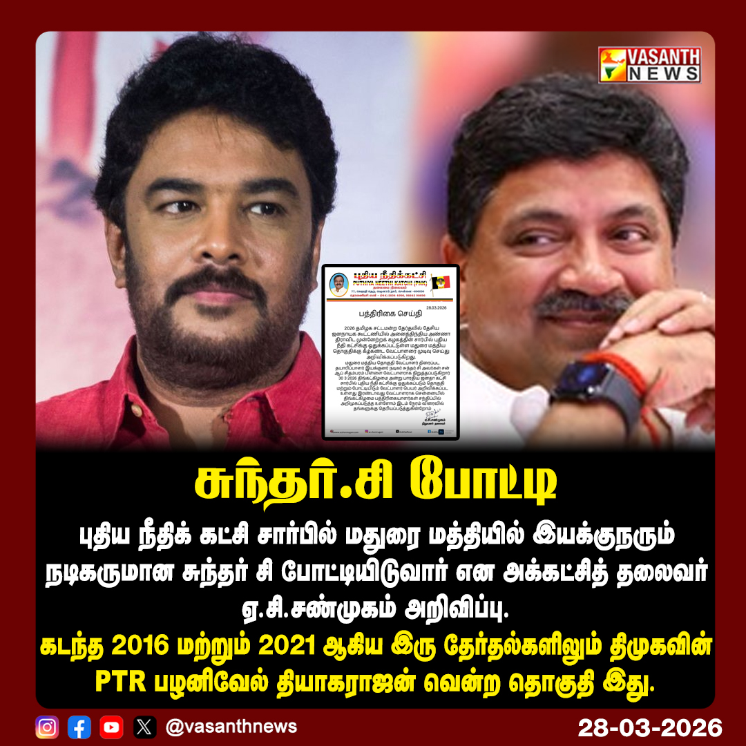 #VasanthNews #SundarC #NewJusticeParty #MaduraiCentral #PTR #DMK #Election2026