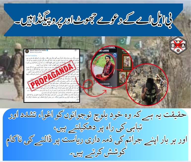 بی ایل اے کے دعوے جھوٹ اور پروپیگنڈا ہیں۔
