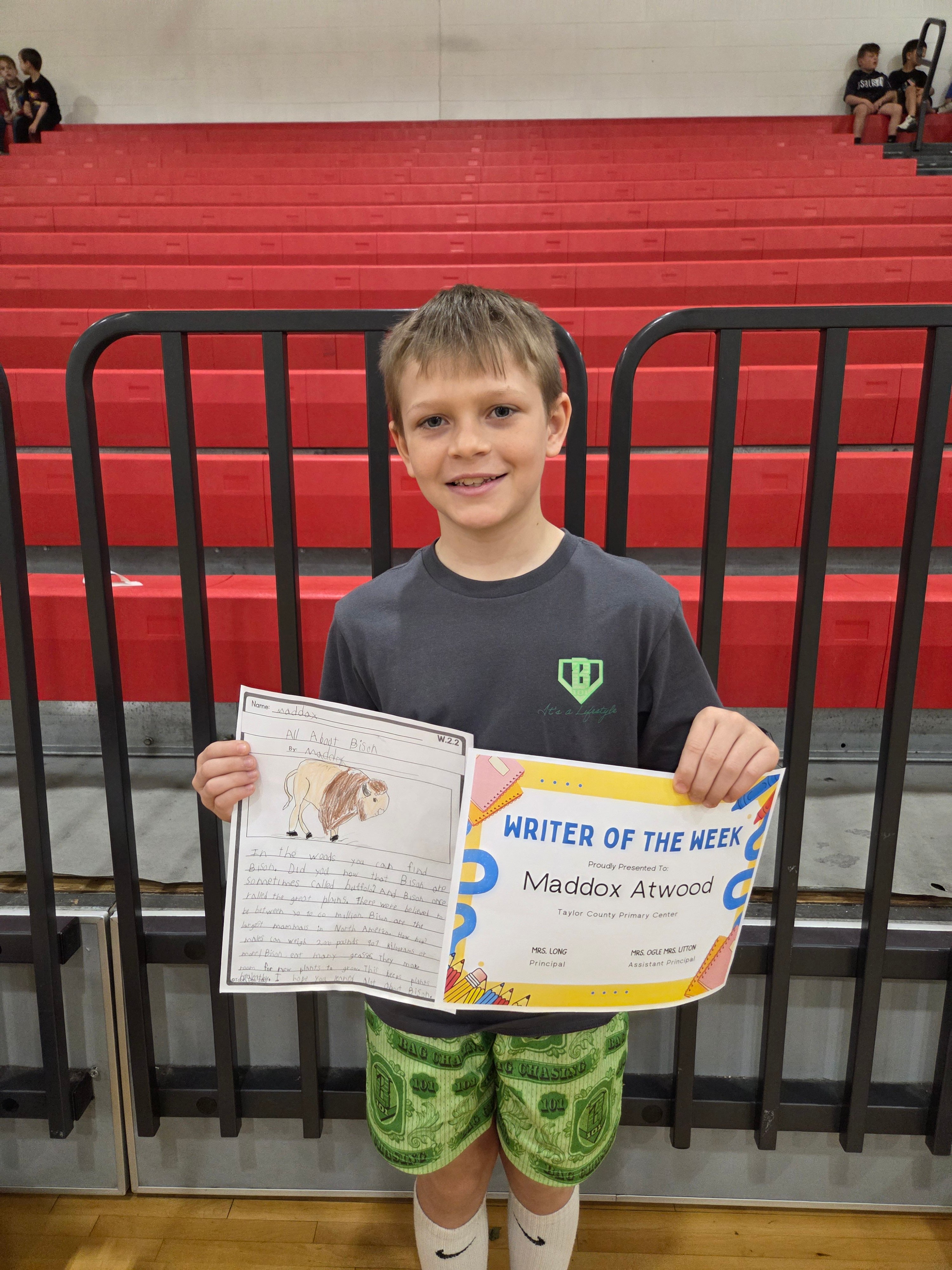 Congratulations to the Writer of the Week from Taylor County Primary Center! πβοΈβ€οΈ
